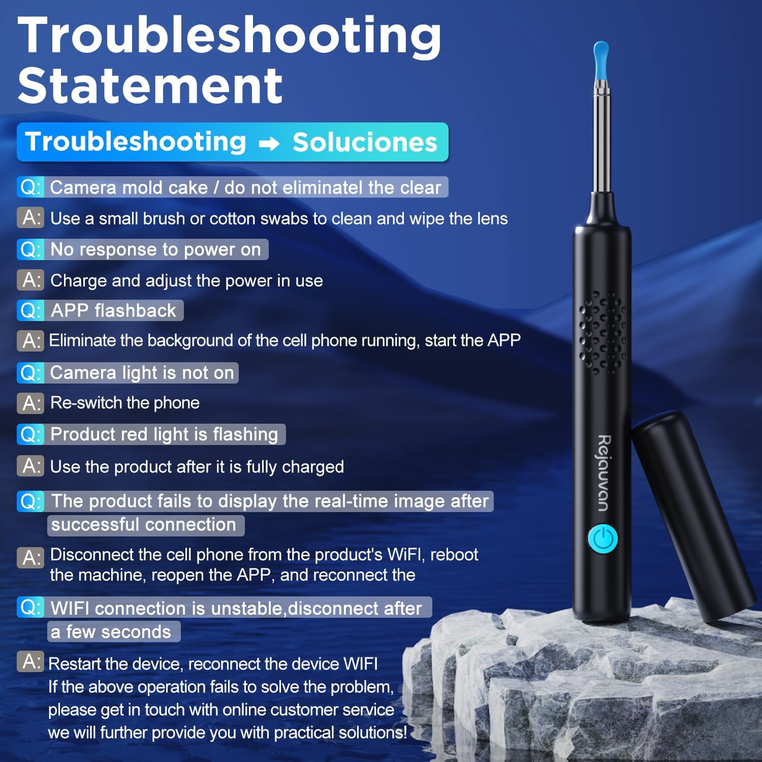 Wifi Connection And App Control: Press And Hold The Power Button To Turn On The Wireless Smart Otoscope, Open The App To Connect To The Product Wifi, And Return To The App To Start Ear Picking. The Professional Ear Cleaning Kit Is Compatible With Most Android And Ios Smartphones And Tablets, And You Can Also Monitor Battery Power, Take Photos, And Record Videos Through The App