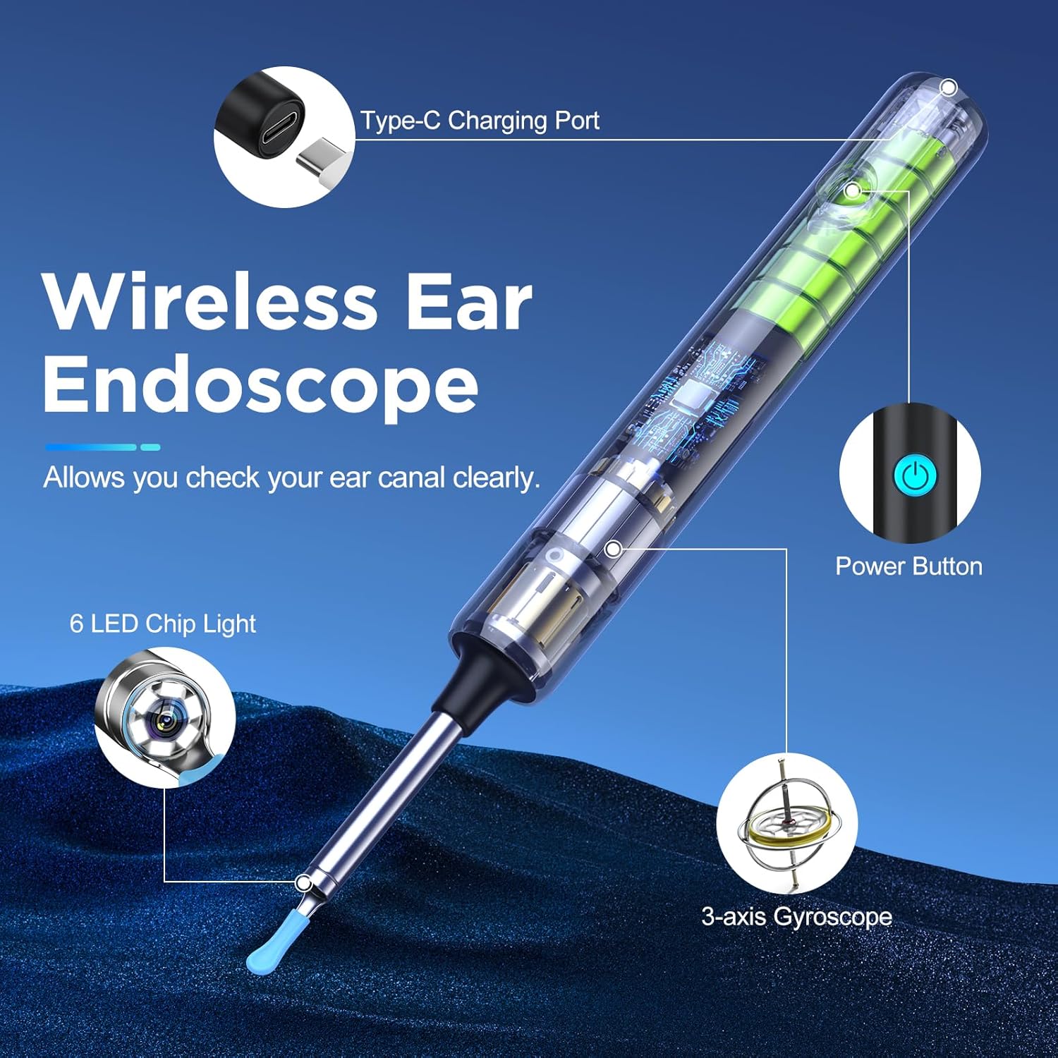 1080P Full Hd Camera Without Lagging: The Ear Wax Camera Is Equipped With A 1080P Full Hd Camera, 20Fps High Image Transmission Rate, And Is Equipped With 6 Led Shadowless Lights And 6-Axis Intelligent Directional Gyroscope, Make The Inside Of The Ear Canal Look Like Daytime,Allowing You To Have A Smooth And Comfortable Experience The Best Earwax Cleaning Experience