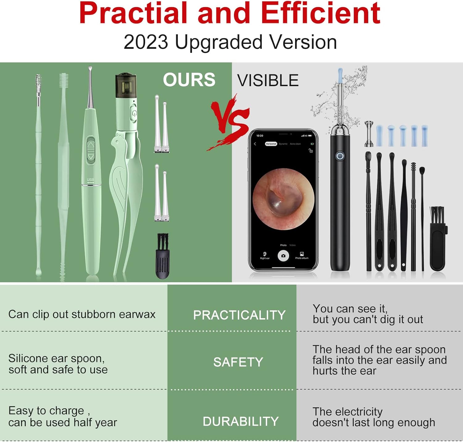 Led Lights Ear Cleaner Tool:This Clean Ears Ear Wax Remover Has Two Types Of Led Lights(Cold Light Suits At Night,Warm Light Source Suits During The Day.The Work Of This Ears Cleaner Becomes Visual And Less Afraid Of Stabbing And Causing Nausea And Retching, Suits Sensitive Skin