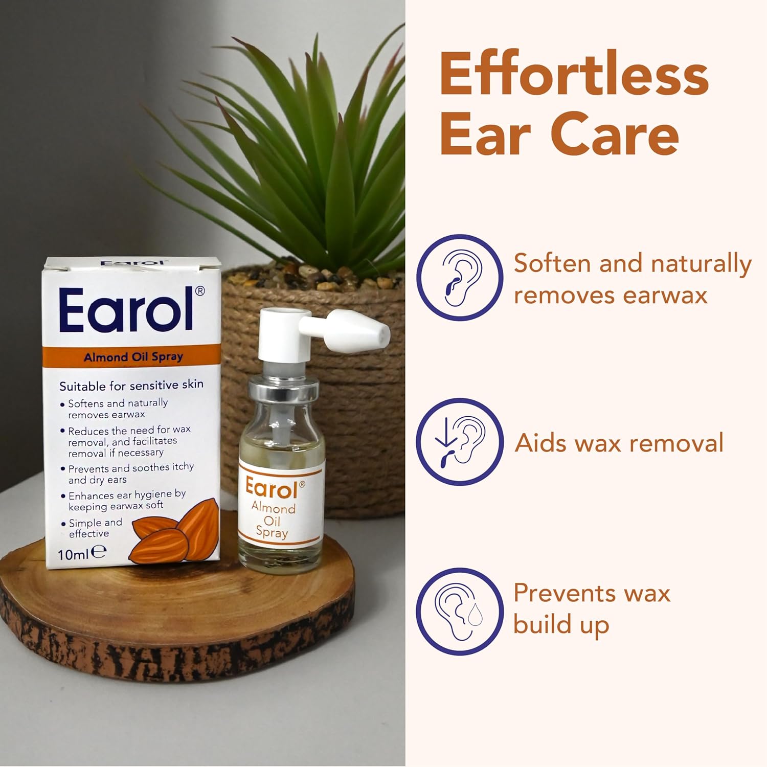 Earol Almond Oil Ear Spray, Clinically Proven For Ear Wax Removal, Safe For Sensitive Skin, Reduce Need For Syringing Or Microsuction, 1 Pack Of 10Ml Metered Dose Spray
