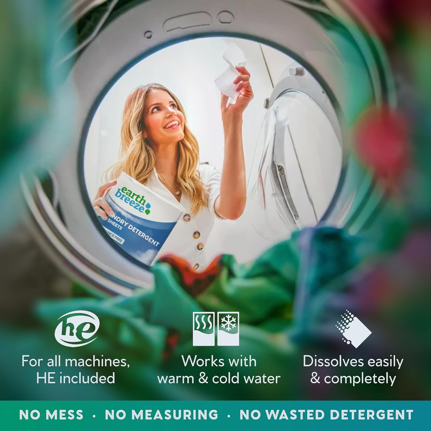 Laundry Detergent Eco Sheets: Earth Breeze Laundry Sheets Are Kind To Sensitive Skin; Dermatologist-Tested, Hypoallergenic, Bleach-Free, Dye-Free, Paraben-Free, Phosphate-Free, Phthalate-Free, And Certified Cruelty-Free