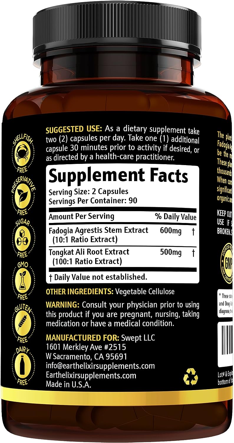 Earth Elixir Fadogia Agrestis 600Mg And Tongkat Ali 500Mg Supplements (180 Capsules) - Made In Usa - 3 Month Supply 3R