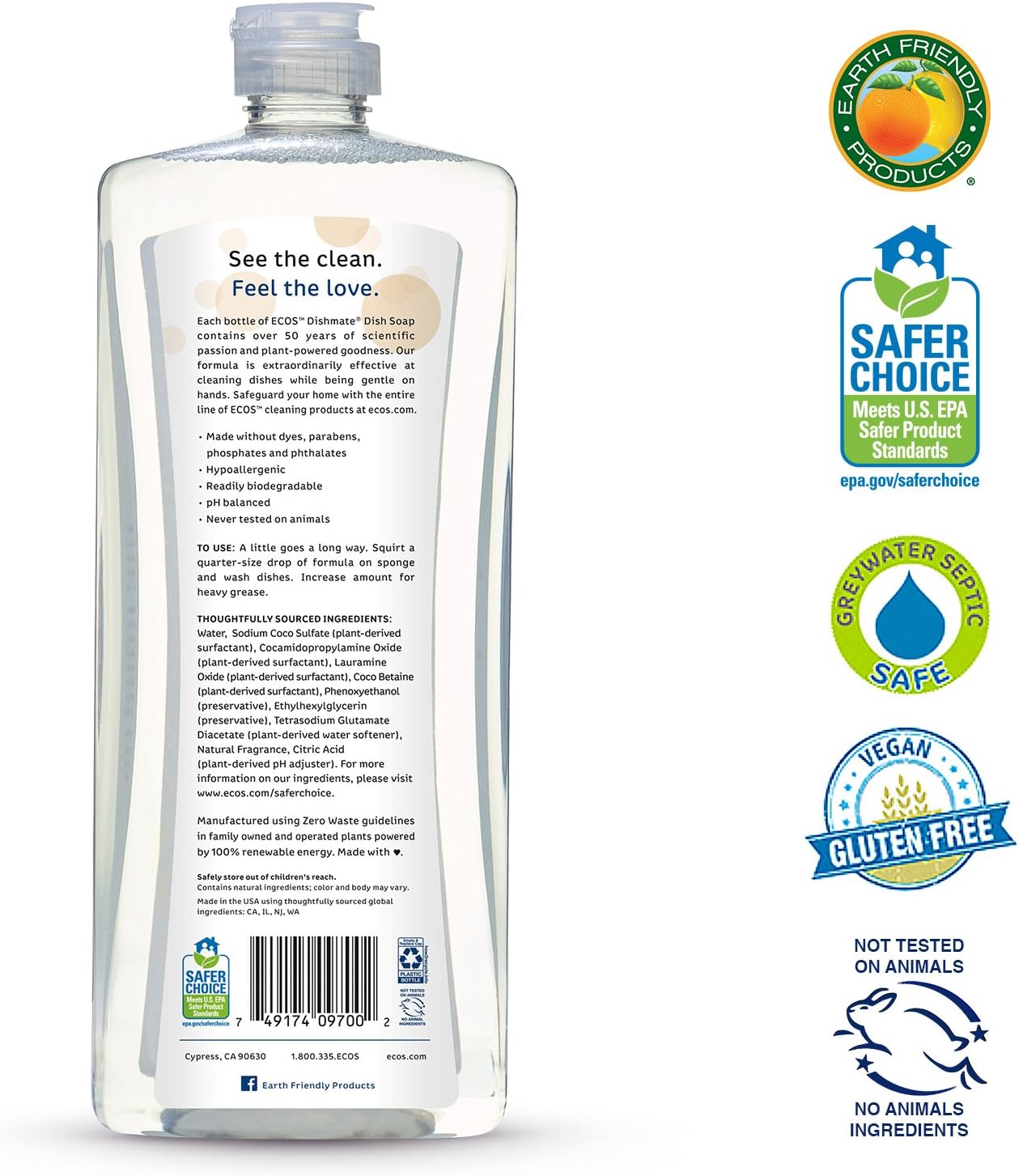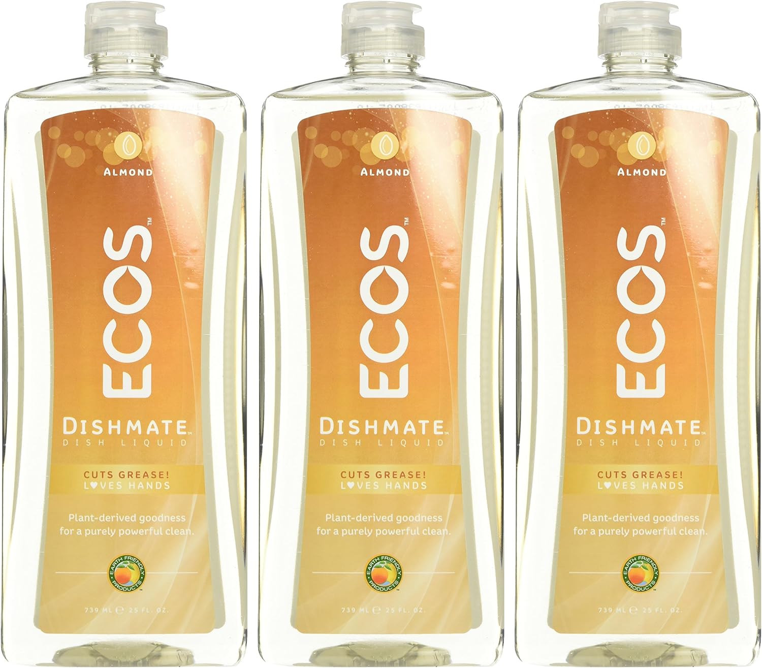 Earth Friendly Products Dishmate, Dishwashing Liquid, Natural Almond, 25 Ounce (Pack Of 3)