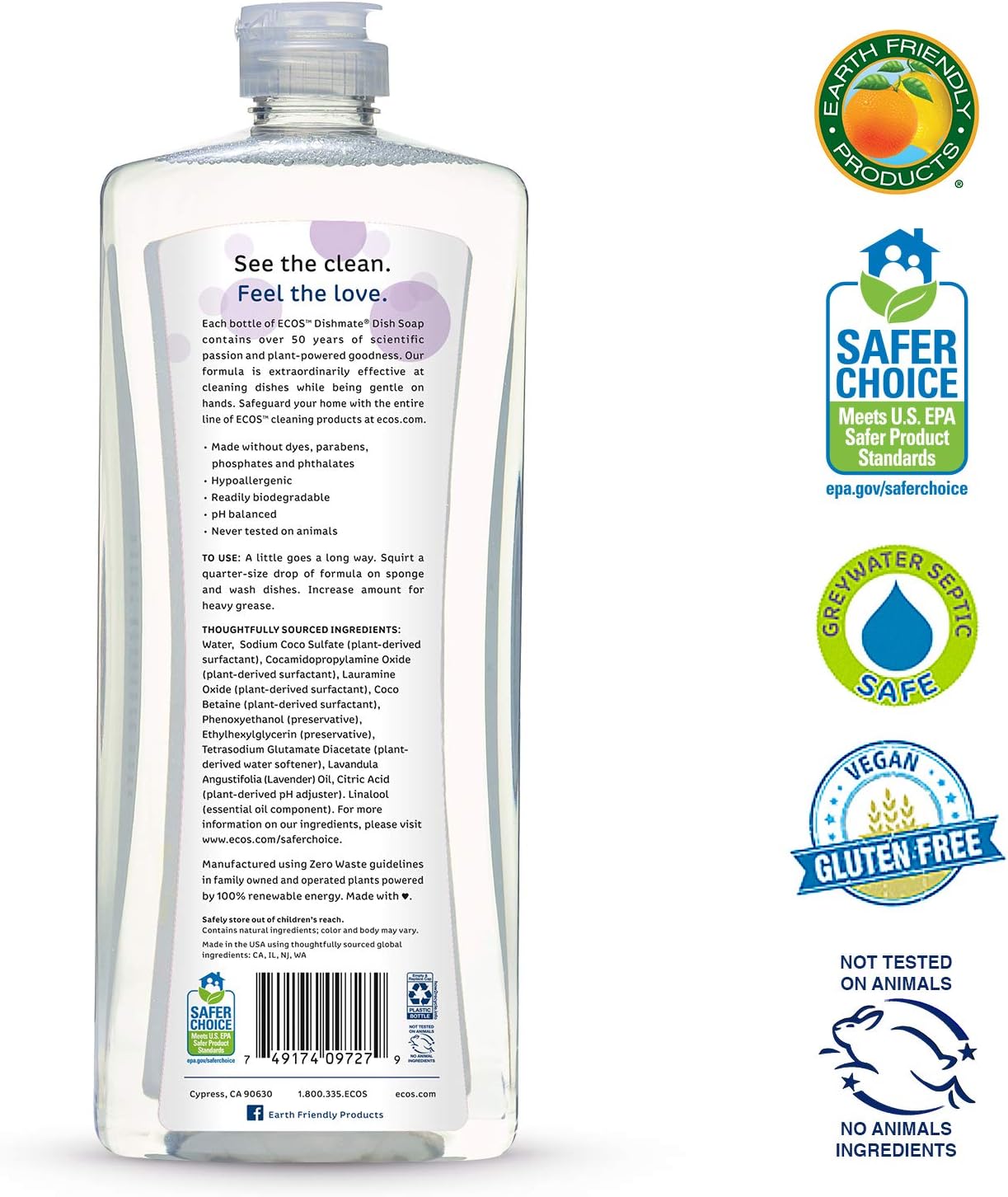 Earth Friendly Products Ecos Dishmate, Dishwashing Liquid, Natural Lavender, 25 Oz, Grape (97276)