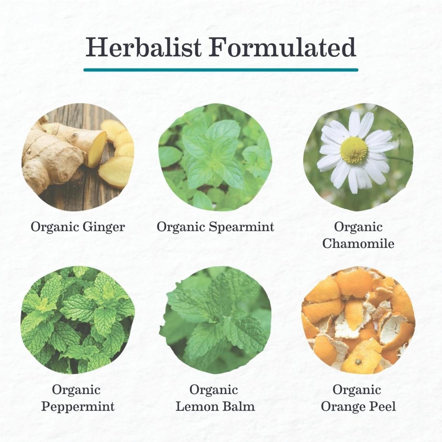 Settle Your Stomach: Organic Ginger Root Joins Forces With Chamomile, Lemon Balm, A Hint Of Mint And A Twist Of Orange To Help Ease The Quease