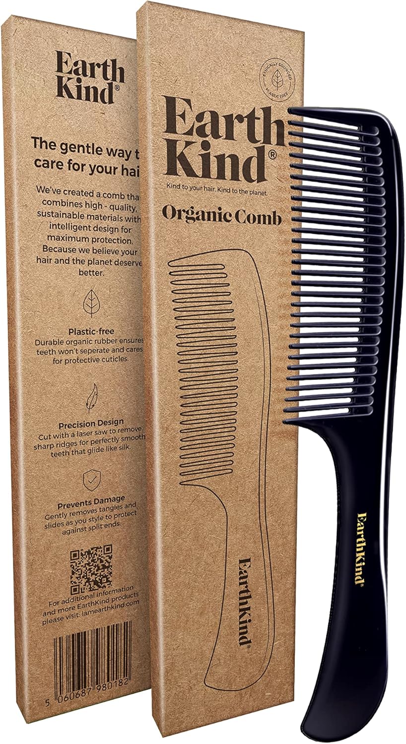 Earthkind Organic Rubber Detangling Comb - Plastic-Free, Black, One Size