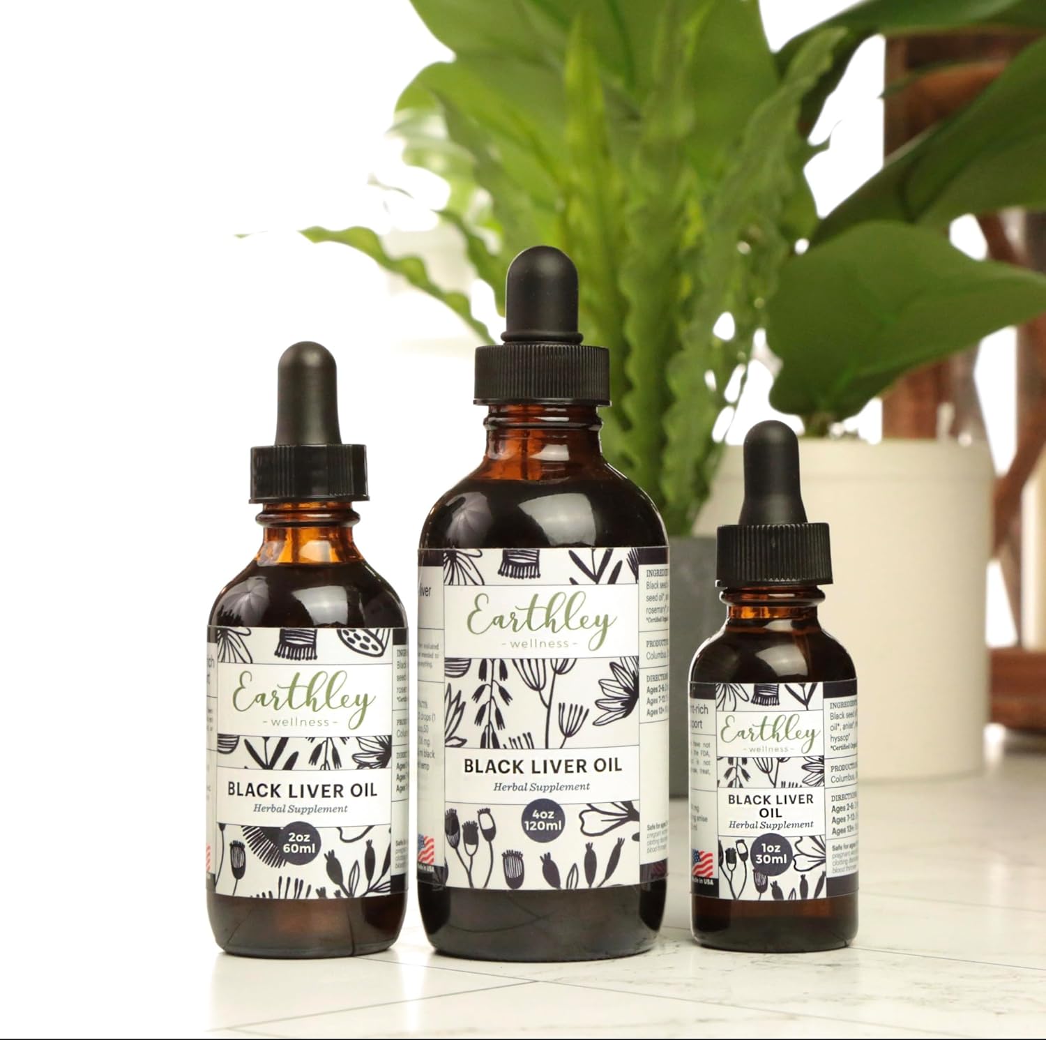 Earthley Wellness Black Liver Oil, Liver, Immune, And Gut Health Support, Helps Elimate Toxins And Supports Liver Health, Zero Flavors, Colors, Zero Added Sugars, Allergens (2Oz)