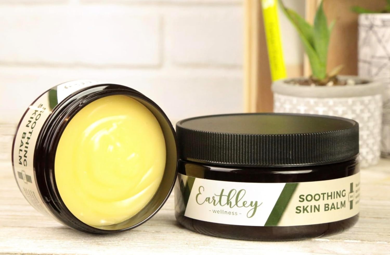 About this item Dry, Itchy, Irritated Skin: This gentle herbal balm provides quick relief for flaky, cracked, or rash-prone skin. Great for eczema, winter dryness, and minor skin irritations. Nourishing Plant-Based Ingredients: Formulated with just five ingredients including calendula-infused olive oil and rich mango butterānaturally calming and moisturizing for all skin types. Safe for the Whole Family: Made with kids, babies, and adults in mind. Non-toxic, and soothing enough for sensitive skin. Easy Daily Use: Massage a small amount into clean skin as needed. Perfect for hands, elbows, knees, or anywhere needing extra moisture and care. Quality You Can Trust: NO artificial colors, fragrances, preservatives, allergens, or synthetic ingredients. Only pure, Earthley-safe goodness for your skin. See more product details,Dry, Itchy, Irritated Skin: This gentle herbal balm provides quick relief for flaky, cracked, or rash-prone skin. Great for eczema, winter dryness, and minor skin irritations,Nourishing Plant-Based Ingredients: Formulated with just five ingredients including calendula-infused olive oil and rich mango butterānaturally calming and moisturizing for all skin types,Safe for the Whole Family: Made with kids, babies, and adults in mind. Non-toxic, and soothing enough for sensitive skin,Easy Daily Use: Massage a small amount into clean skin as needed. Perfect for hands, elbows, knees, or anywhere needing extra moisture and care,Quality You Can Trust: NO artificial colors, fragrances, preservatives, allergens, or synthetic ingredients. Only pure, Earthley-safe goodness for your skin
