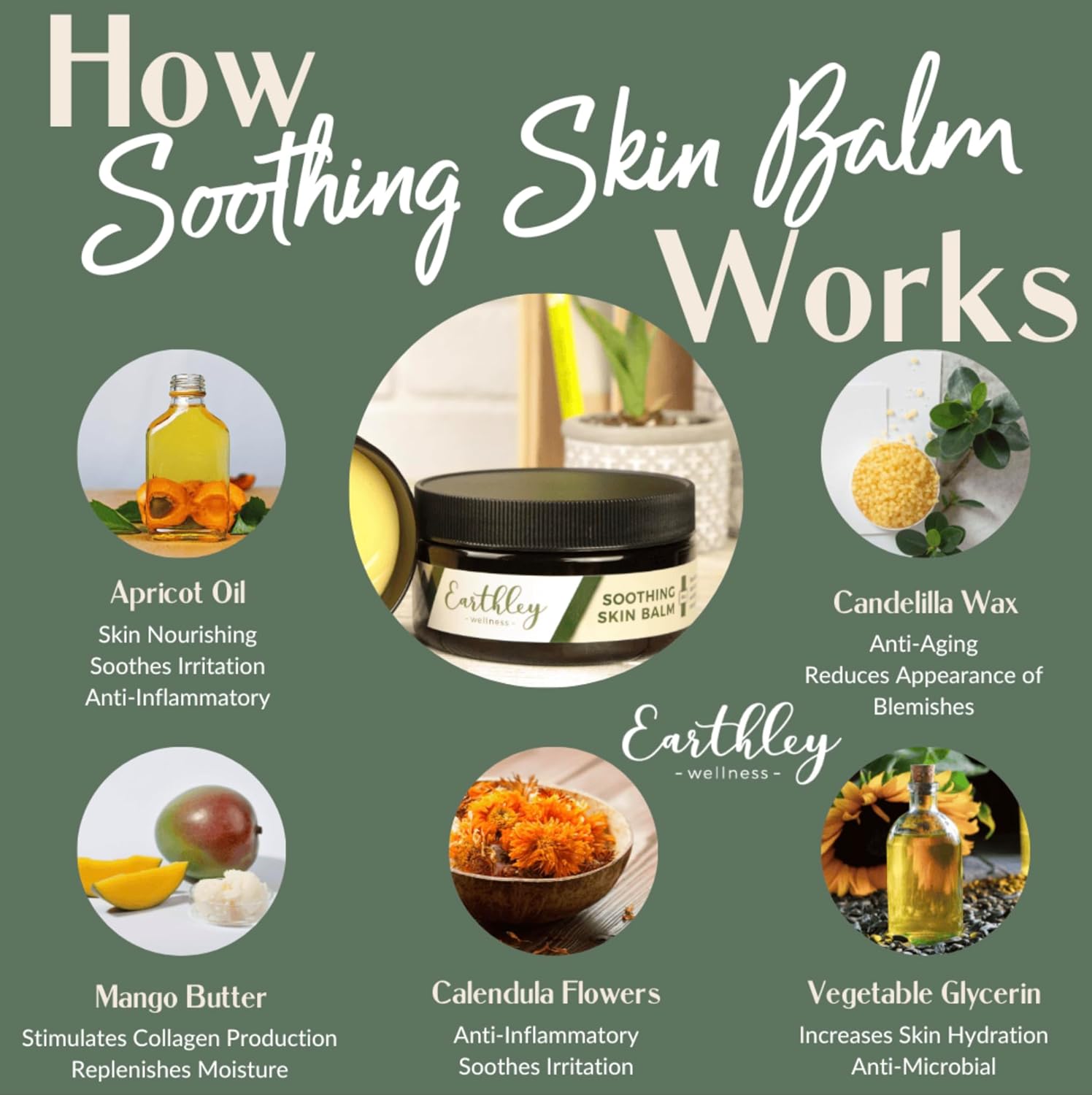 Earthley Wellness Soothing Skin Balm, Natural Moisturizing Cream For Dry, Flaky, Itchy Skin, Calendula & Mango Butter, Family-Safe Formula, 4 Oz