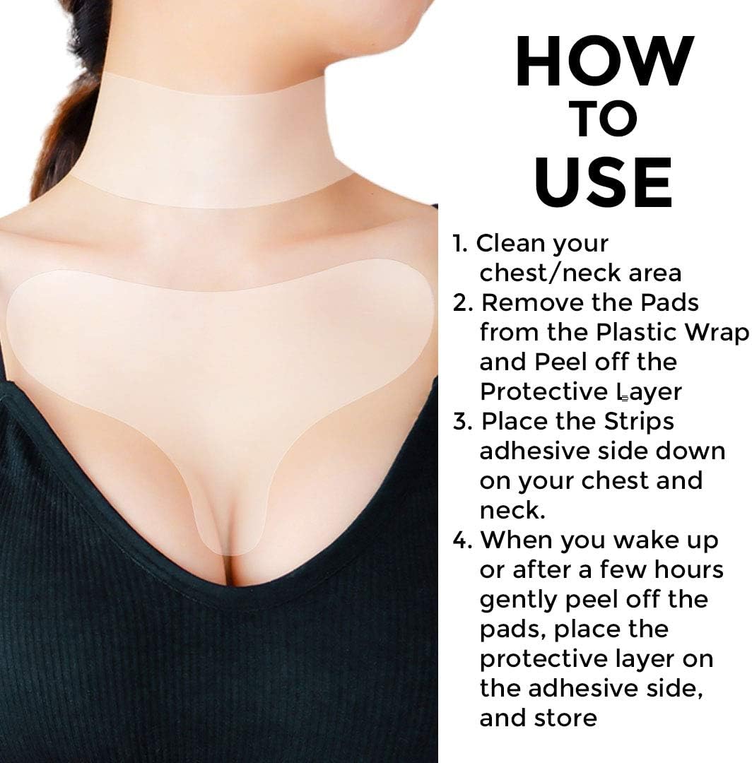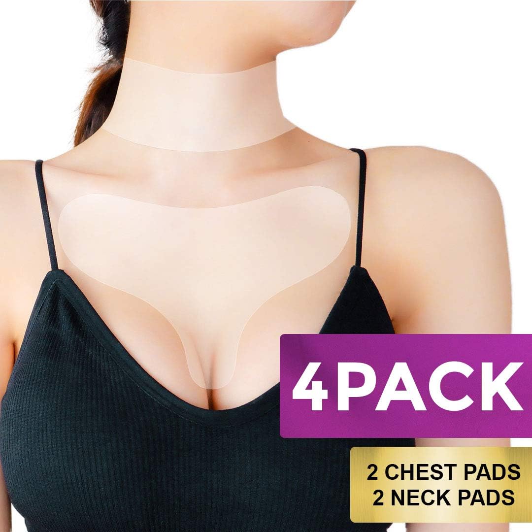 LOOK YOUNGER OVERNIGHT - these pads take the concept of "beauty sleep" to a whole new level. TURN BACK THE CLOCK with our 4 pack of chest and neck anti-wrinkle silicone padsSIMPLE, SAFE, AND FAST ACTING - Silicone on the skin creates the perfect environment for moisture. No air can get to the area with the silicone pads, so it draws moisture to the surface of skin which helps prevent new lines from forming and plumps up the skin to smooth out wrinklesOur Anti-wrinkle pads are made from medical grade silicone and are NON-TOXIC and REUSABLE. No need to put chemicals on your skin, simply stick the pads to your chest and neck and wake up in the morning with smoother looking skin. The pads can be washed and re-used multiple times. We suggest using them every other night for up to 2 weeksFEEL MORE CONFIDENT wearing lower cut tops with a newly smooth décolleté and neck. No more worrying about how you’ll look in your favorite clothes