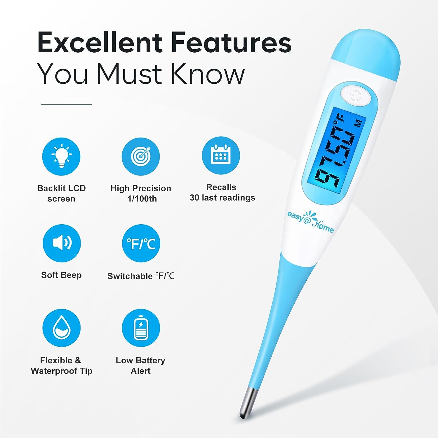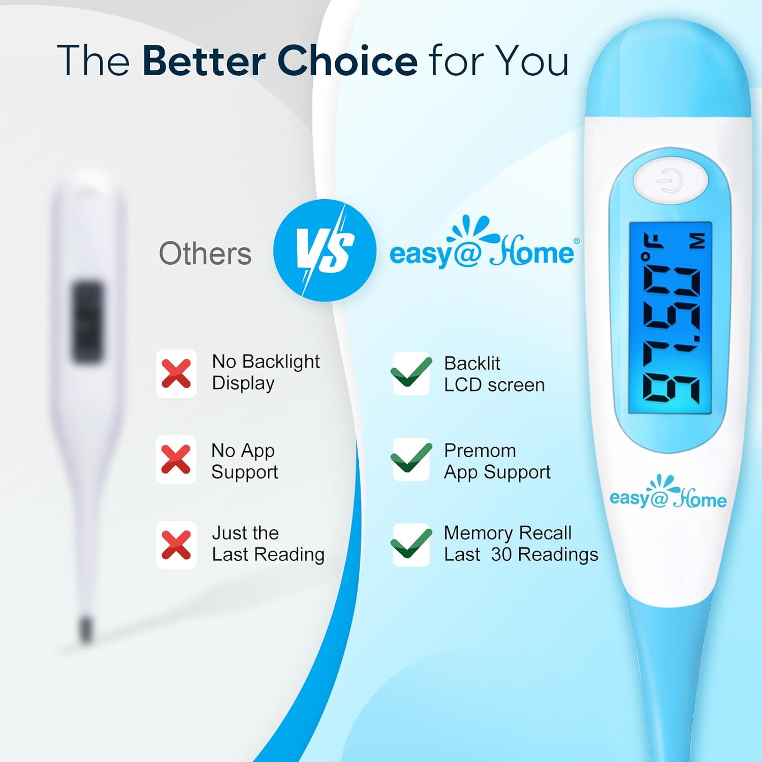 Easy@Home Digital Basal Thermometer With Blue Backlight Lcd Display, 1/100Th Degree High Precision And Memory Recall, Not Bluetooth Enabled, Upgraded Ebt-100B(Blue)