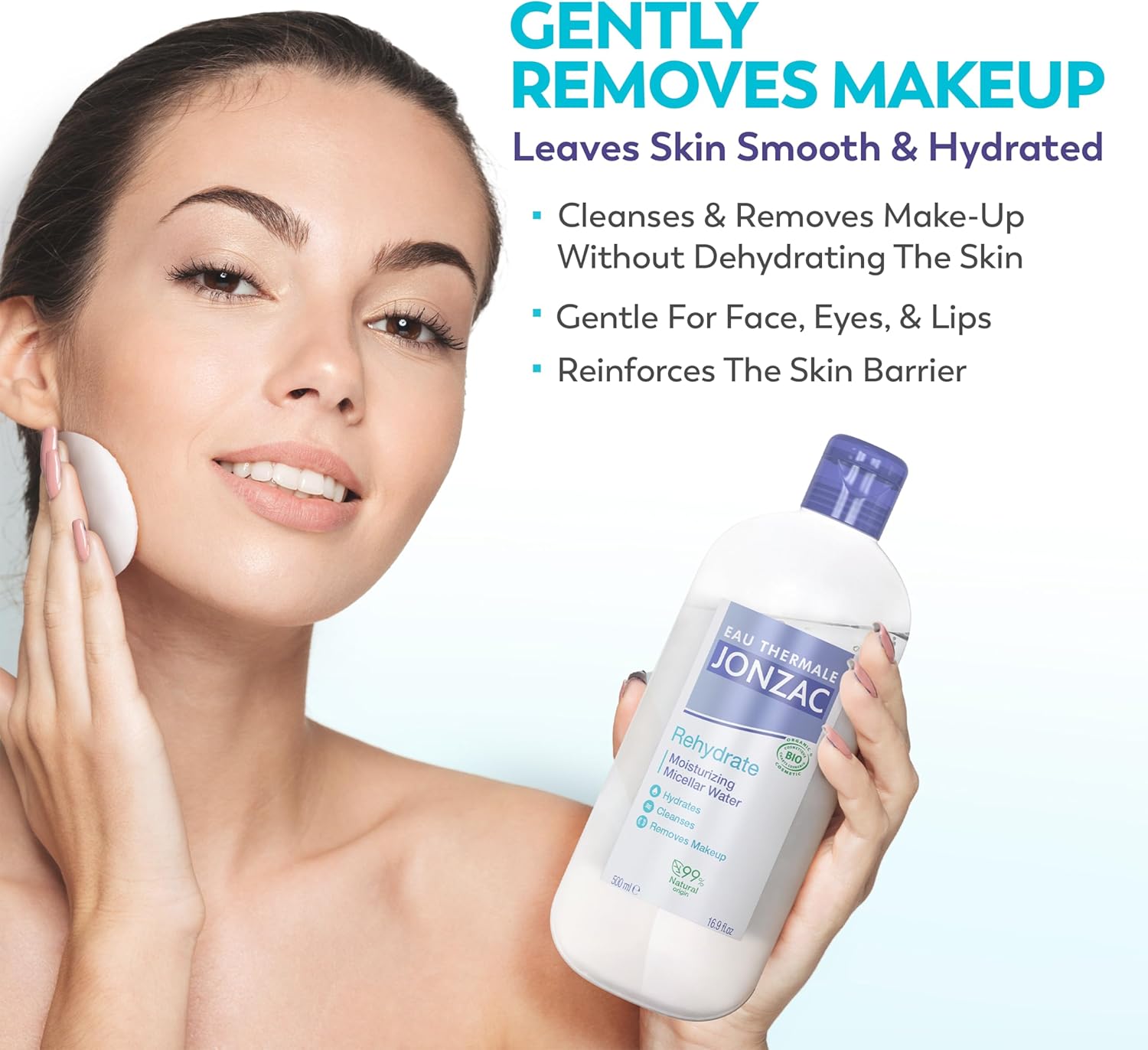 Eau Thermale Jonzac – Moisturizing Micellar Water - Rehydrate Dehydrated Skin, Even Sensitive - Organic Certified - 500 Ml Bottle