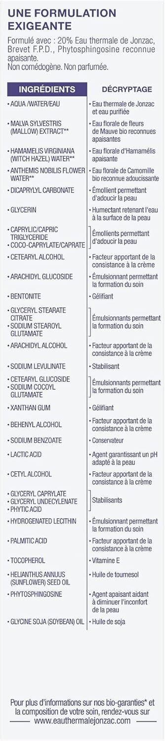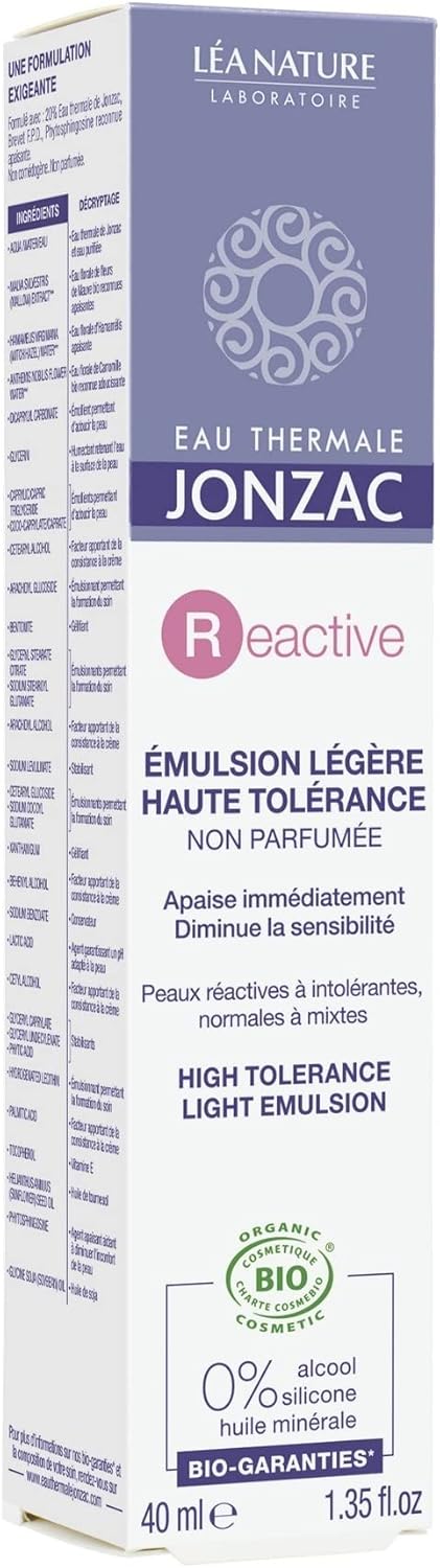 Eau Thermale Jonzac Organic Cosmetic Reactive High Tolerance Light Cream, 40 Ml