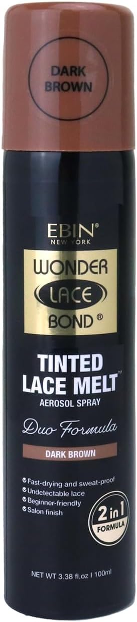 Ebin New York Tinted Lace Spray - 10X Quick Dry, Water Resistant, No Residue, Even Application, Skin Tone Matching, Natural Look - 3.38Oz/ 100Ml - Dark Brown