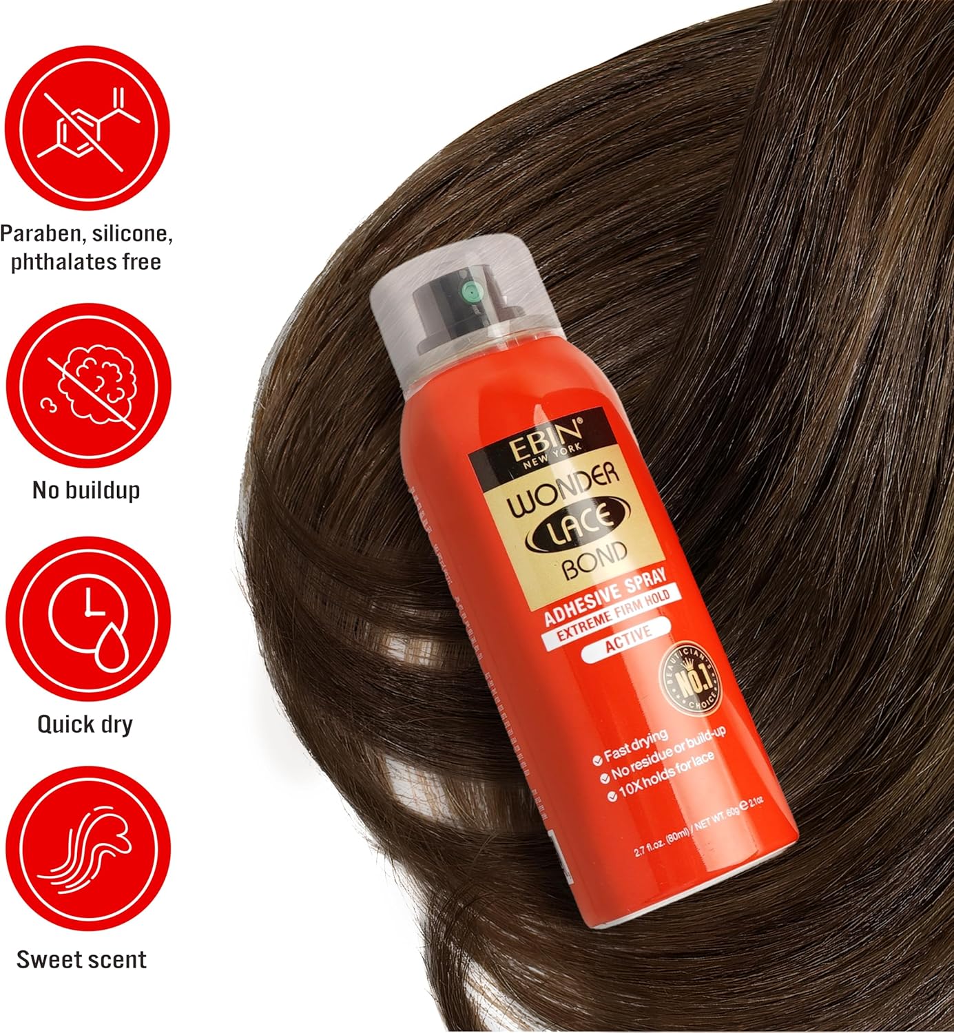 Ebin Wonder Lace Bond Spray - 80Ml | Extra Mega Hold (Original)