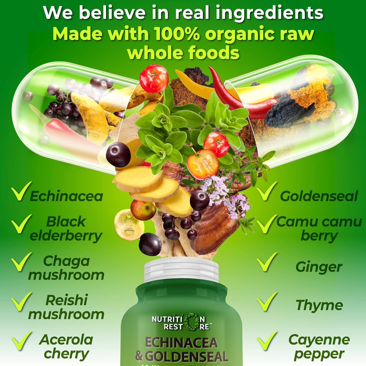 Echinacea Goldenseal Capsules - 10 in 1 Immune Support Supplement - 1455mg - Vegan Echinacea Capsules Supplement Made With Organic Whole Foods - Herbal Immune System Support - 2 Month Supply