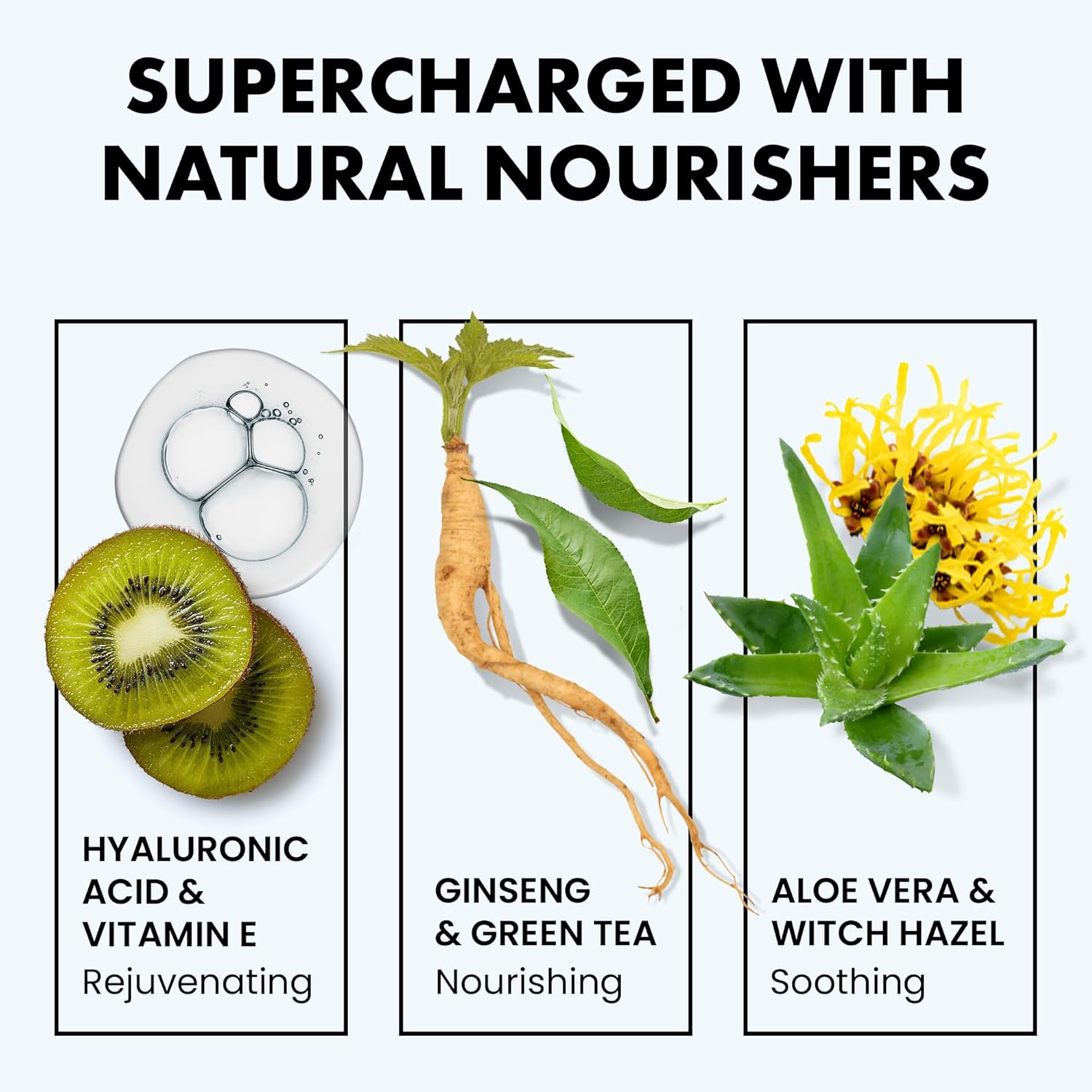POWERFUL ANTIOXIDANT BLEND: Infused with green tea, aloe vera, and ginseng, this antioxidant-rich formula supports skinās natural radiance while delivering lasting hydration. With 2.5% hyaluronic acid, it helps maintain a plump, refreshed complexion