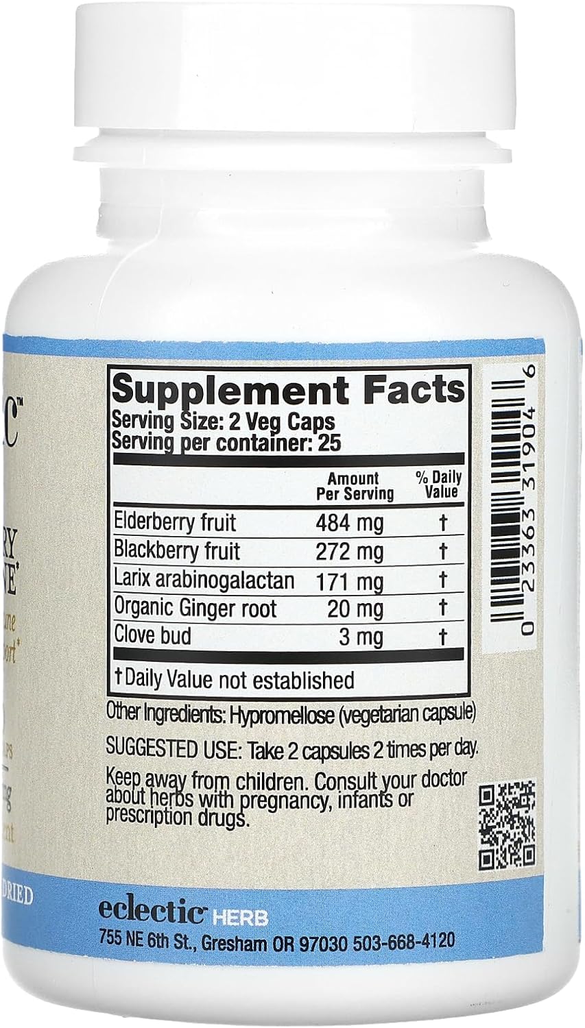 About this item It contains fresh freeze-dried raw, wild crafted elderberry fruit; raw, freeze-dried Oregon grown blackberry; Larix; raw, organic, freeze-dried, ginger; and cloves. Consumption of this herbal extract supports immune health. Take 1-5 capsules per day. Consumption of this dietary supplement should be discontinued if unusual symptoms occur Consult your healthcare advisor before consumption of these herbs during pregnancy with infants or with prescription drugs During the summer months products may arrive warm but Amazon stores and ships products in accordance with manufacturers' recommendations, when provided. See more product details,It contains fresh freeze-dried raw, wild crafted elderberry fruit; raw, freeze-dried Oregon grown blackberry; Larix; raw, organic, freeze-dried, ginger; and cloves,Consumption of this herbal extract supports immune health,Take 1-5 capsules per day,Consumption of this dietary supplement should be discontinued if unusual symptoms occur,Consult your healthcare advisor before consumption of these herbs during pregnancy with infants or with prescription drugs,During the summer months products may arrive warm but Amazon stores and ships products in accordance with manufacturers' recommendations, when provided