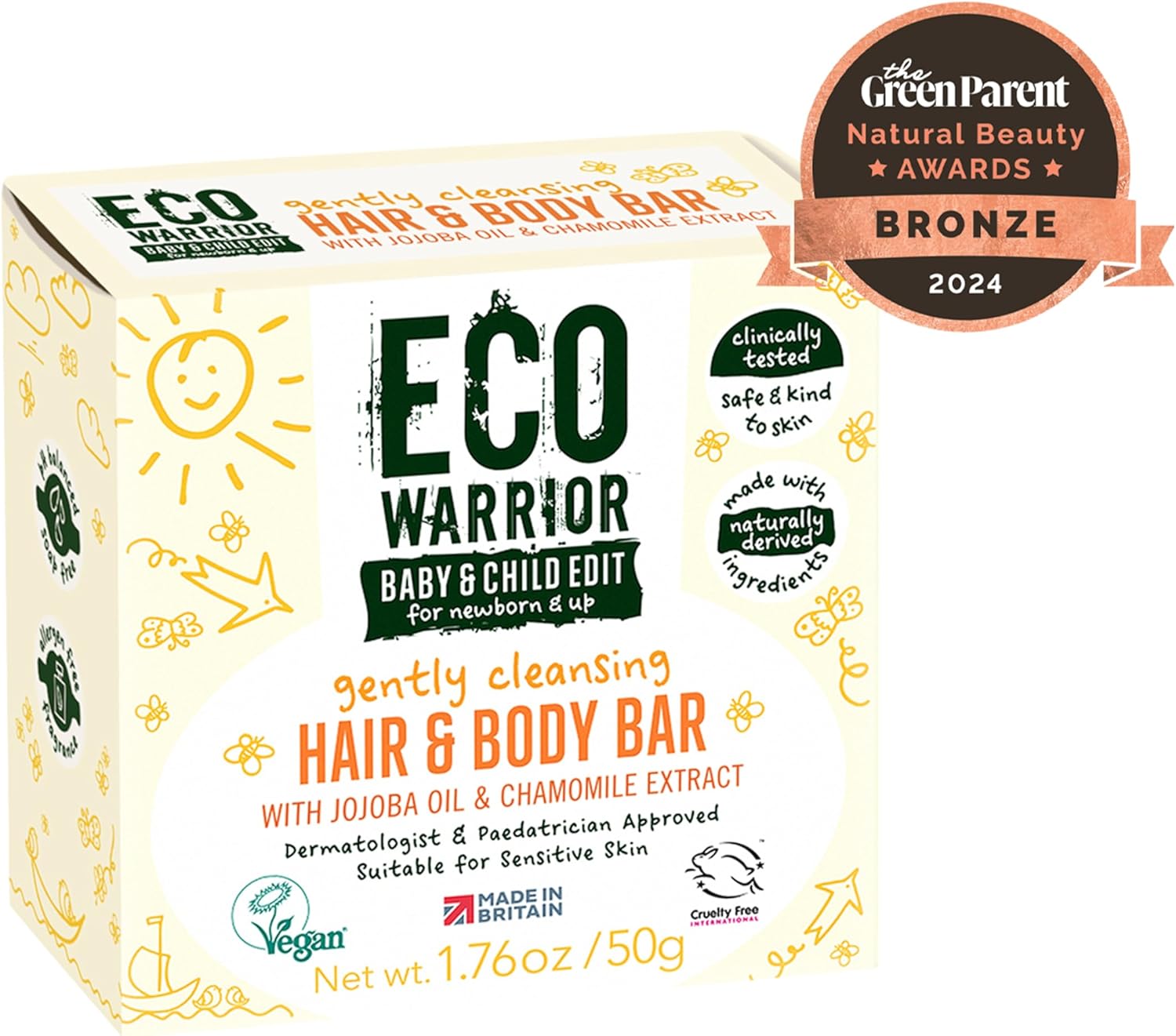 Eco Warrior Baby & Child Edit Gently Cleansing Hair & Body Bar (50G) | Hair Shampoo And Body Bar Soap (2 In 1) | Orange Blossom Scent | Gentle, Eco Friendly, Vegan, Cruelty Free