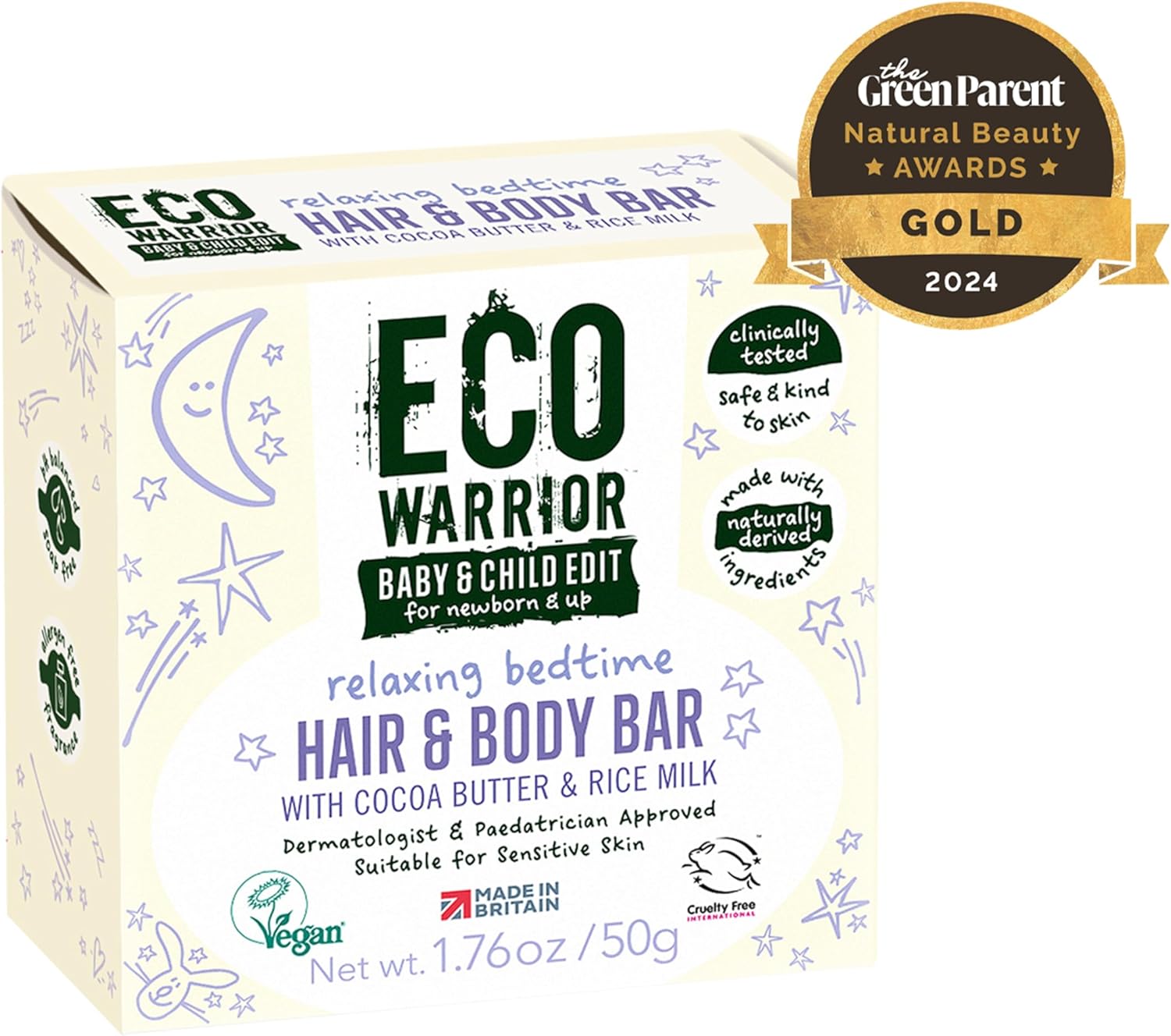 Eco Warrior Baby & Child Edit Relaxing Bedtime Hair & Body Bar (50G) | Hair Shampoo And Body Soap (2 In 1) | Lavender Blossom Scent | Gentle, Eco Friendly, Vegan, Cruelty Free
