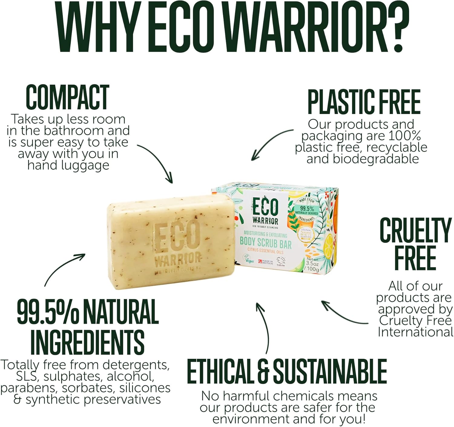 Eco Warrior Body Scrub Soap Bar | Eco Friendly, Natural Body Bar Soap Scrub | Vegan, Cruelty-Free, No Sls Or Parabens | Nourishing And Gentle Exfoliating With Citrus Essential Oils And Oatmeal | 100G