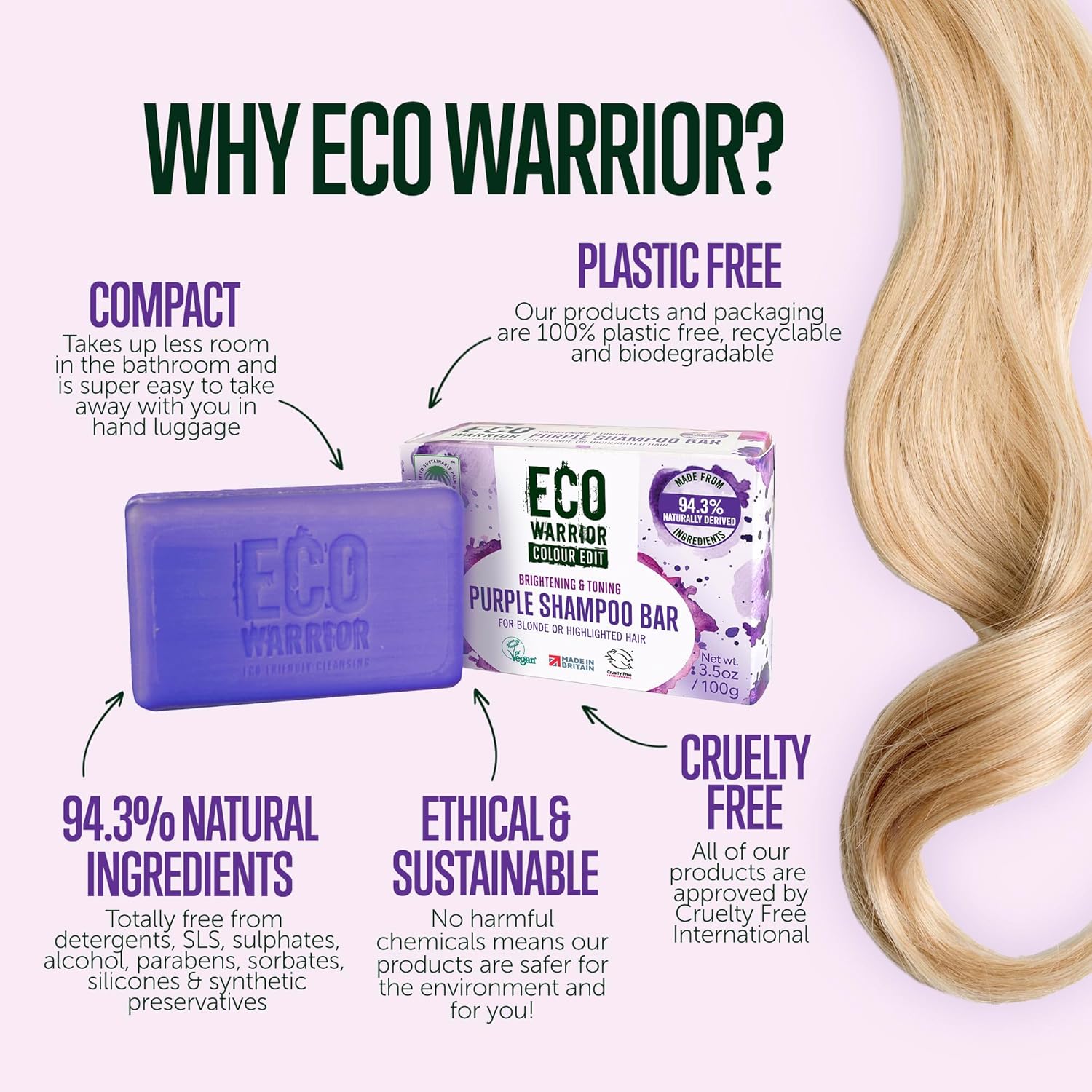 Eco Warrior Purple Shampoo Bar For Blonde And Grey Hair, 100G | Vegan, Cruelty-Free, Natural, Eco Friendly| Free From Sls Or Parabens | Brightening & Toning Bar Shampoo With Squalane & Shea Butter
