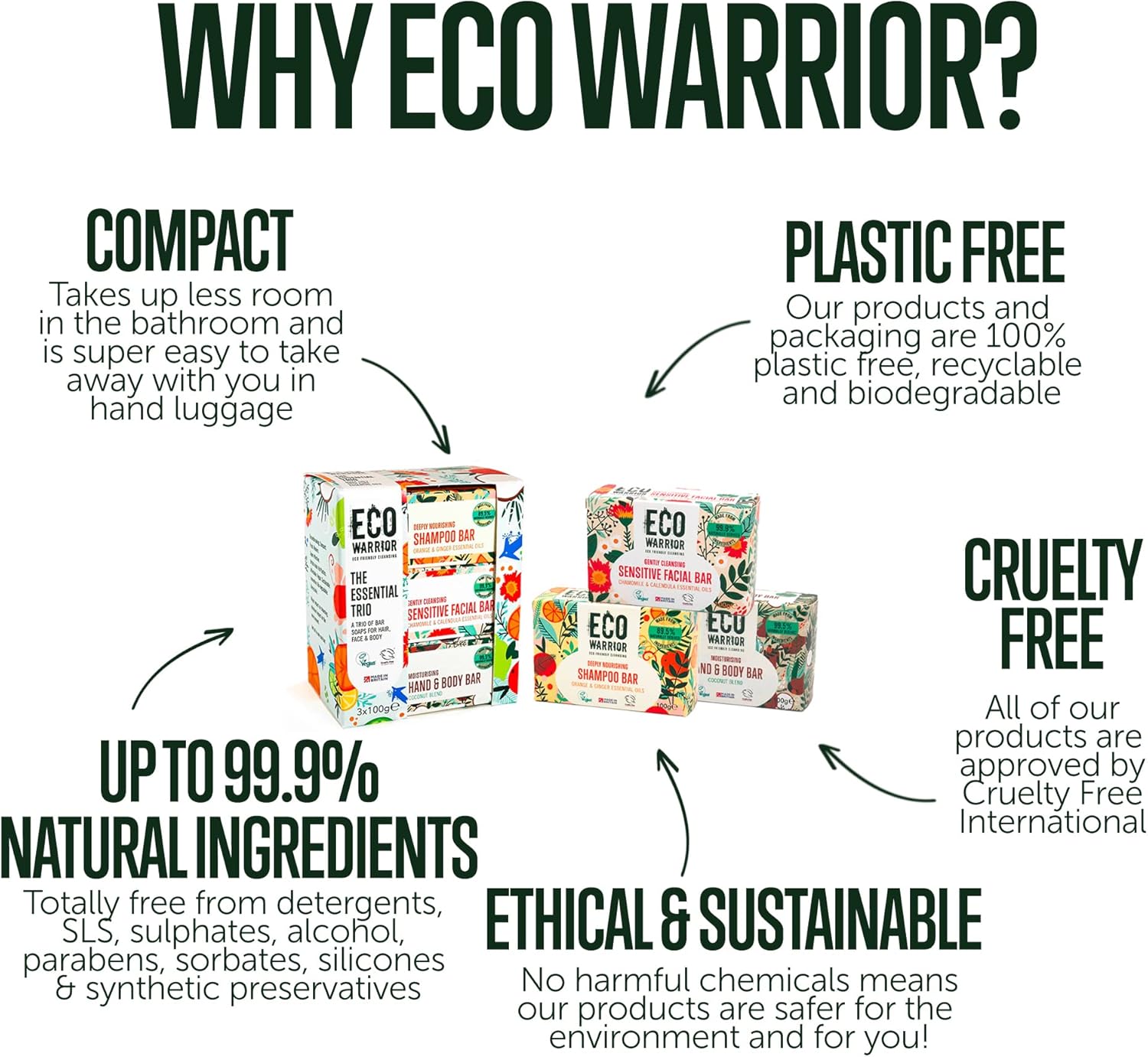 Eco Warrior The Sensitive Trio Soap Bars (3 X 100G)| Shampoo, Facial And Body Soap Bars | Natural, Vegan, Eco Friendly, Cruelty Free, No Sls Or Parabens | Gentle For Sensitive Skin | Gift For Her