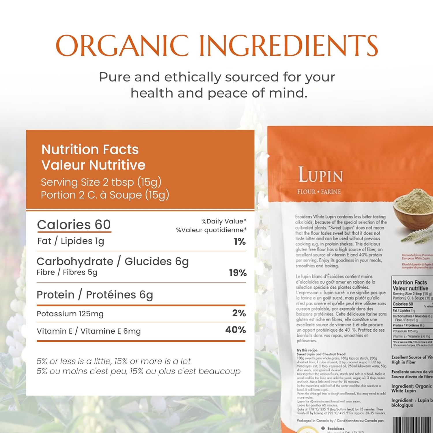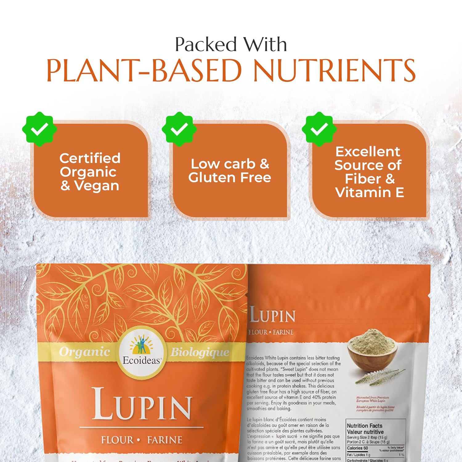 Ecoideas Organic Lupin Flour - 400G, Keto & Gluten-Free Low Carb Flour For Baking, Non-Gmo, Vegan