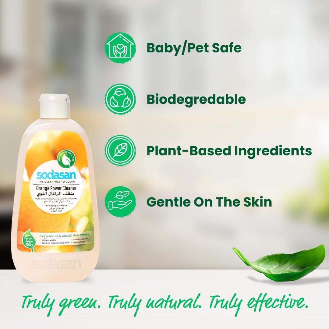 Product Description All-purpose cleaner with grease-dissolving action. For the thorough cleaning of all smooth, Wipe able surfaces in the home. Leaves a natural fresh scent of oranges. The cleaning action is based on the natural grease-dissolving power of the orange oil. The production of the orange cleaner is co2-neutral. Available in 500 ml pack. Ingredients Alkylpolyglucoside, d-glucopyranose, aqua, sodium laurylsulfate, perfume, alcohol, citrate, limonene, linalool, caramel,All-purpose cleaner with grease-dissolving action,Natural, fresh orange scent,Highly concentrated and effective,For the thorough cleaning of all smooth, wipe able surfaces in the home,The cleaning action is based on the natural grease-dissolving power of the orange oil