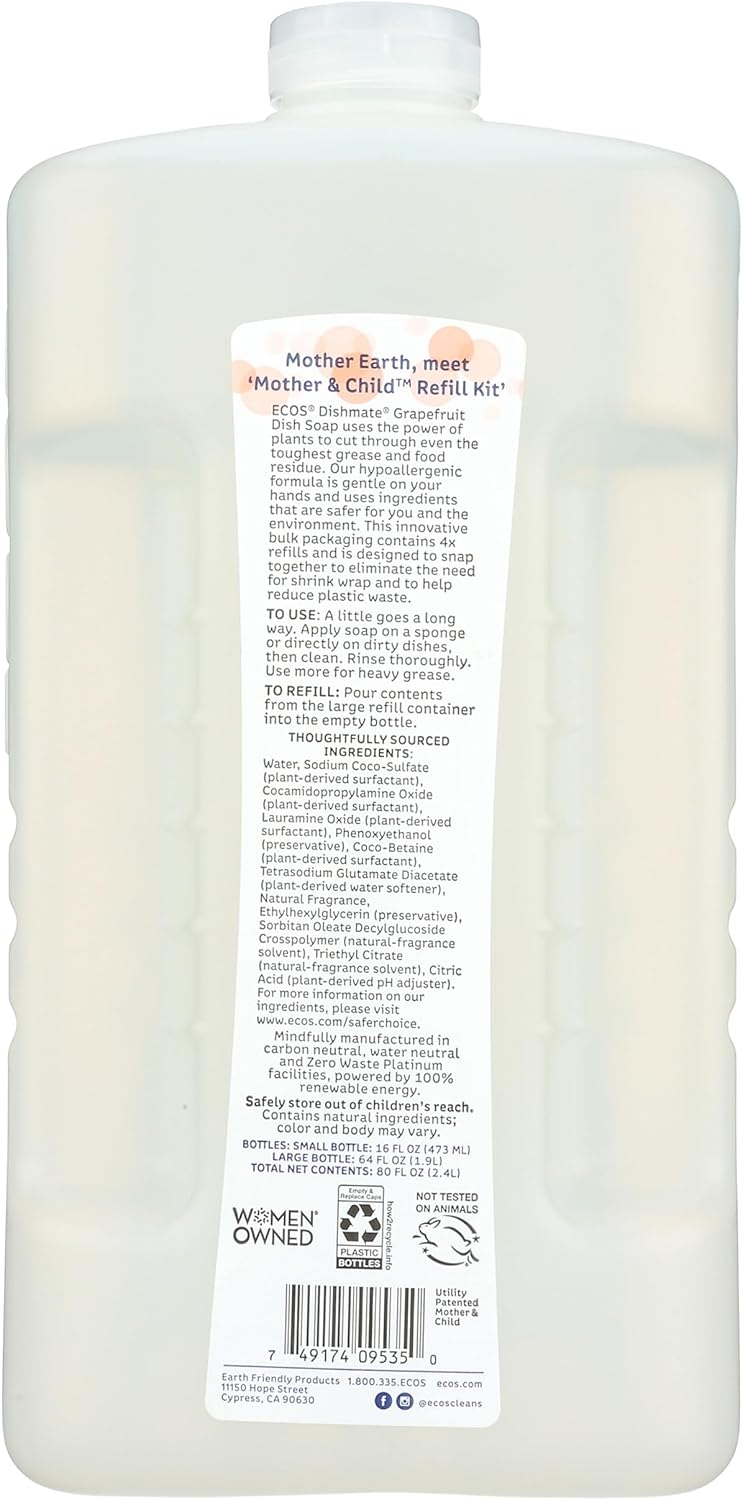 Ecos® Hypoallergenic Dishmate, 1 Count, Grapefruit, Grapefruit, Grapefruit, 80 Oz Bottles By Earth Friendly Products