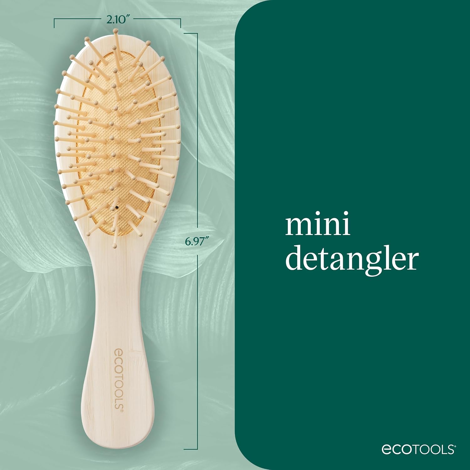 Ecotools Mini Detangler Hairbrush, Brush For Wet Or Dry Hair, Heat Resistant, Mini Hairbrush Gently Detangles & Styles, Travel-Size Paddle Brush, Renewable Bamboo, Vegan & Cruelty-Free, 1 Count
