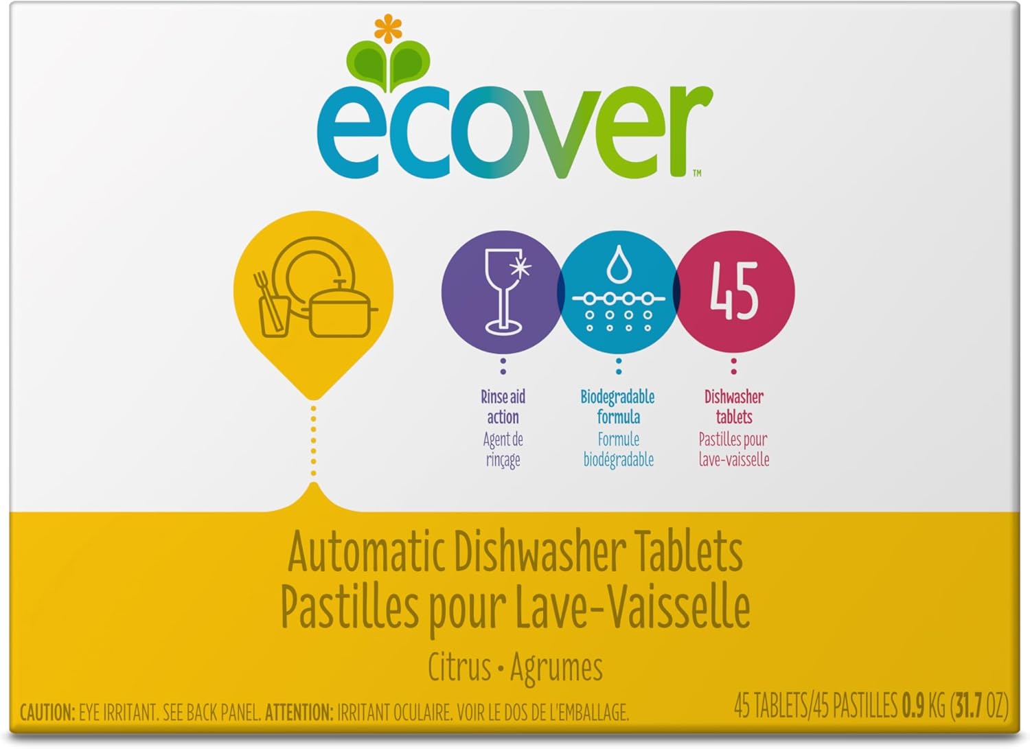 Ecover Automatic Dishwasher Soap Tablets, Citrus, 45 Count