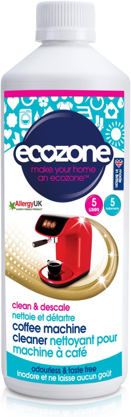 Ecozone coffee machine Descaler is a non-toxic formula that is designed to work with all machine brands and types. The solution cuts through any lingering Lime scale and coffee build-up in your machine leaving you with a spotless and residue-free appliance. The easy to use liquid solution leaves no taste or odour behind so you can enjoy great-tasting coffee every time,Cuts through limescale & coffee residues,Natural, odorless & taste free solution,Maintains machines performance & life time,Item display weight: 0.562