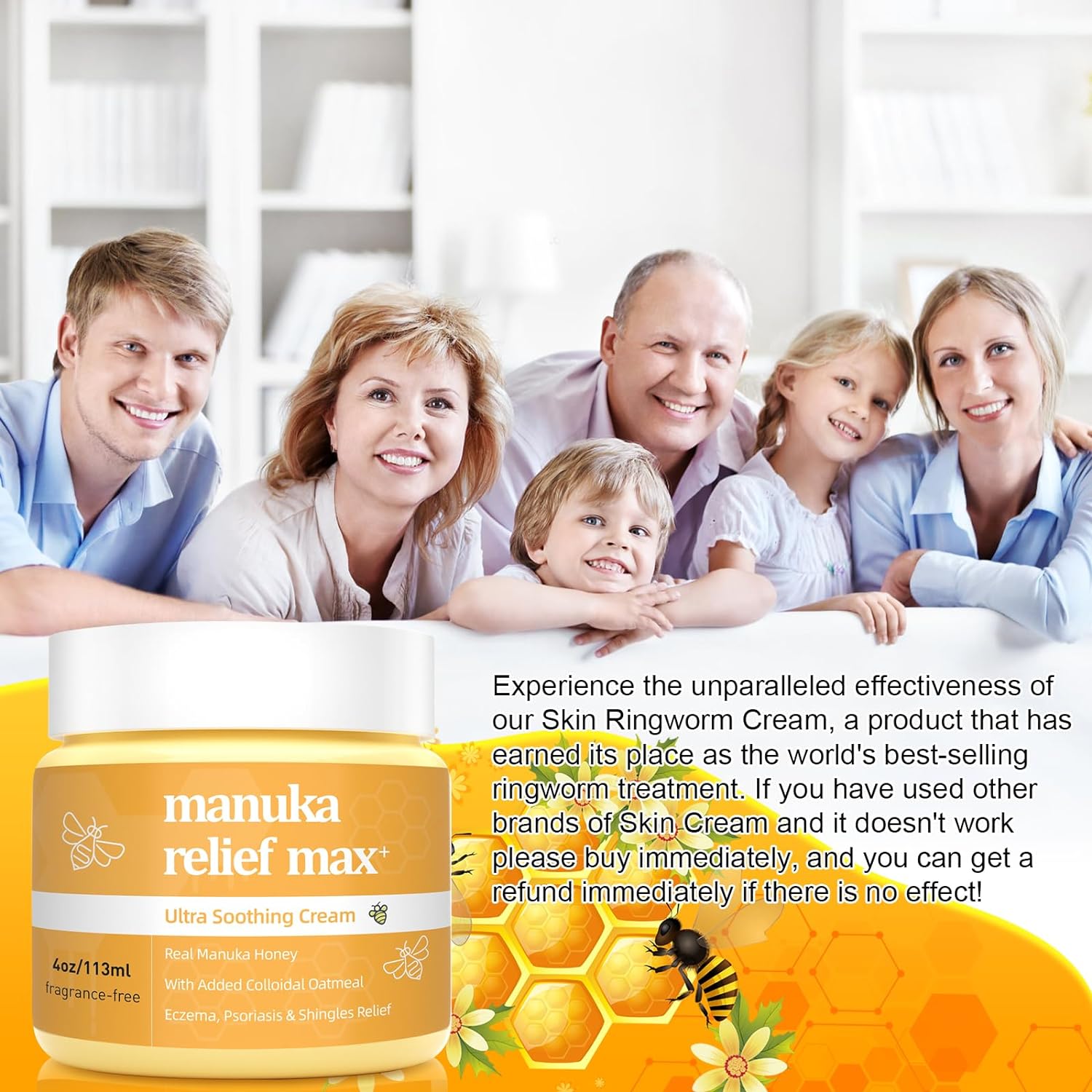 Eczema Psoriasis Manuka Relief Honey Cream, Hand Foot, Tinea Versicolor, Itchy Feet, Butt, Anal Itch, Scalp Dandruff, Bee Sting, Bites, Boil Cyst, Armpit, Adults Kids, Natural Organic Soothing