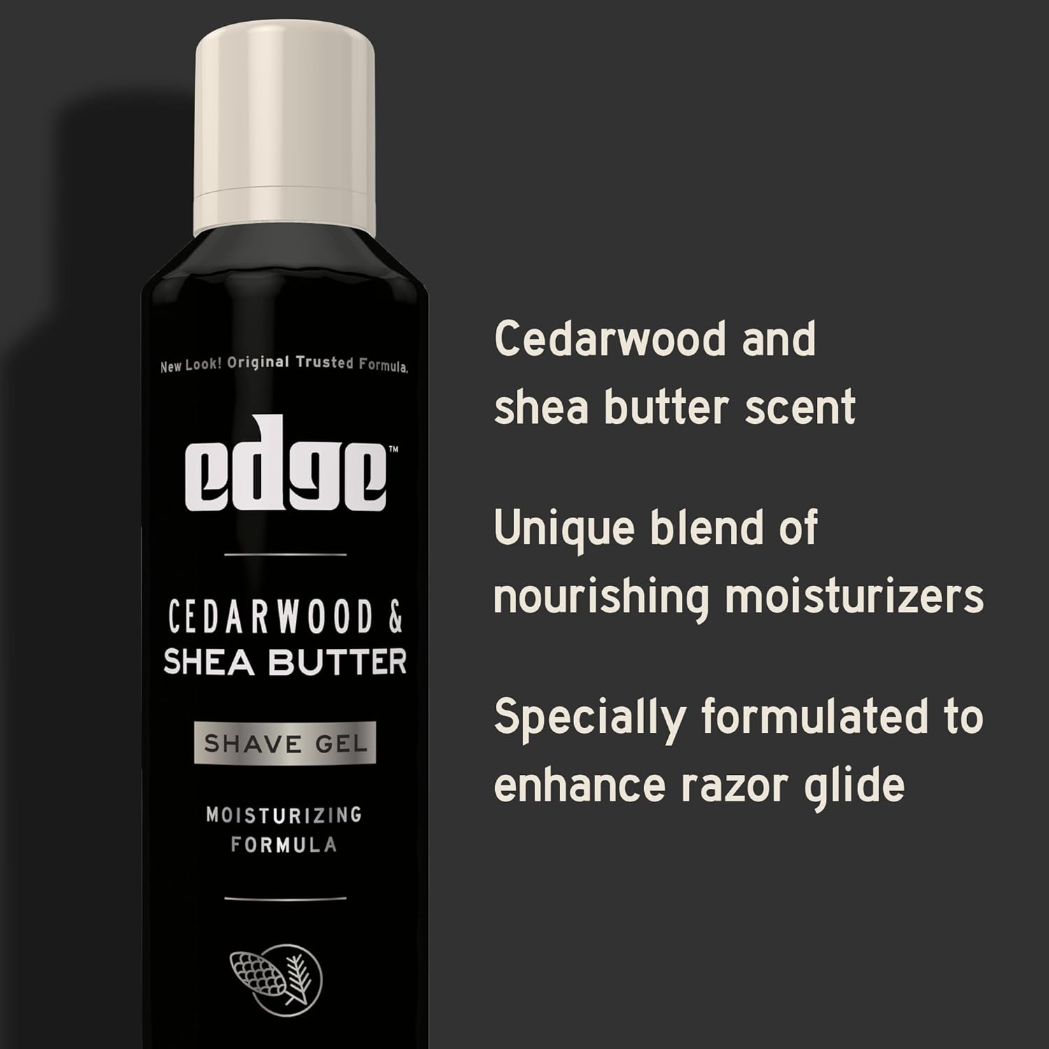 Edge Scented Shave Collection has been designed with passion and purpose to help men take on the day confidently. A moisturizing formula, with Shea Butter, and a sophisticated blend of Cedarwood fragrances will elevate the shave experience with its woody, fresh scent and moisturizing ingredientsNO NONSENSE - Edge Shave Gel for Men is perfect for guys looking to protect their skin and leave it feeling smooth, refreshed, and free of irritationSOMETHING FRESH - Infused with Shea Butter and the unique scent of Cedarwood, this mens shaving gel is specially formulated for manly men who crave a woody, fresh scentPROTECTS AS YOU SHAVE - Formulated to protect your skin from irritationSMOOTH AND HYDRATING - Unique blend of moisturizers and lubricants provides excellent razor glide