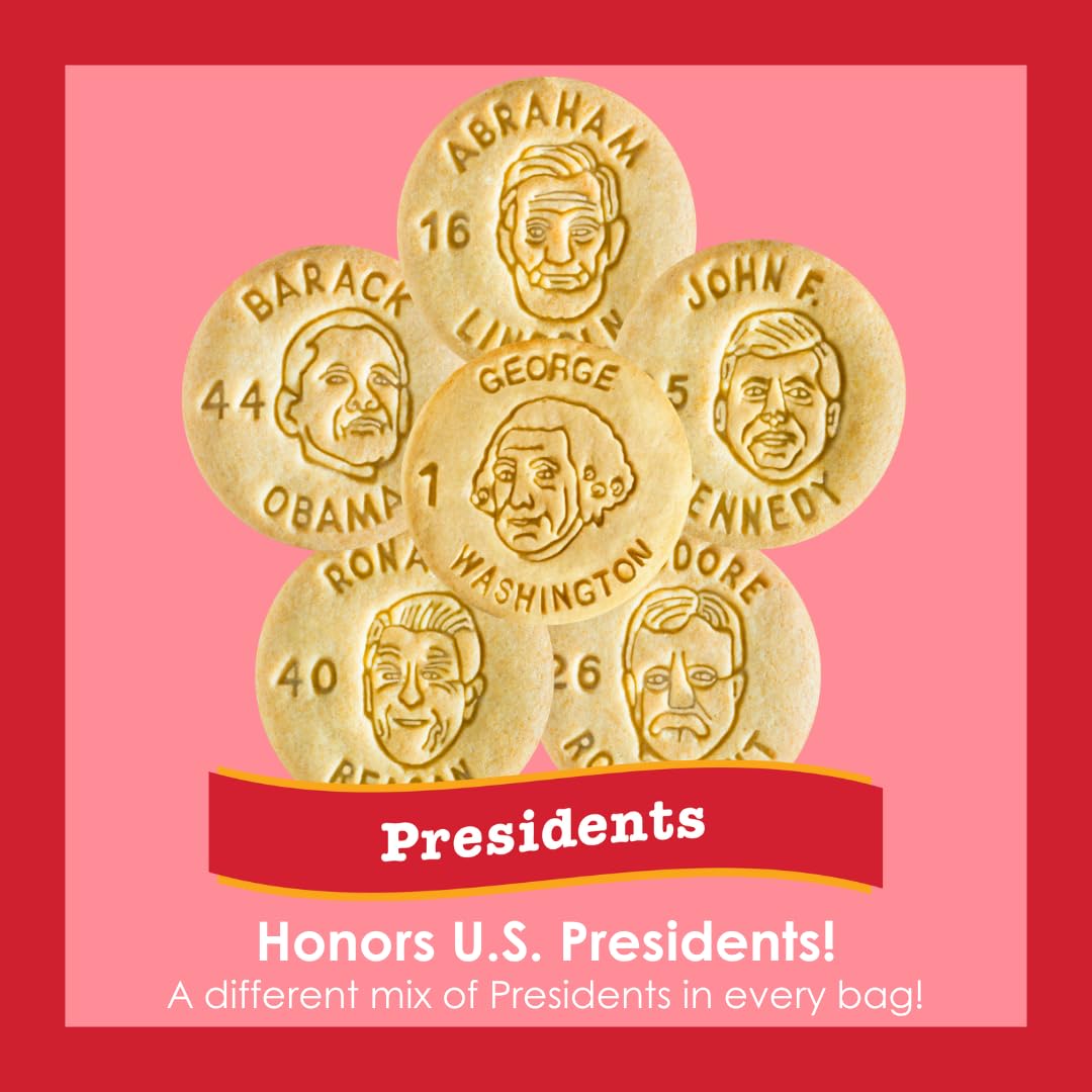 PRESIDENTS – Features U.S. Presidents and the White House. Fun snack for the whole family…ideal for Election Day, Inauguration Day and Presidents Day. You’ll find a different mix of Presidents in each bag so you can learn something new every day. Who was the 22nd President