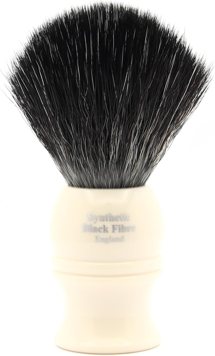Edwin Jagger 1Ej337Syn Classic Black Synthetic Fibre Eco-Friendly Vegan Exfoliating Shaving Brush For Shaving Cream Or Shaving Soap For Men And Women (Imitation Ivory), Medium