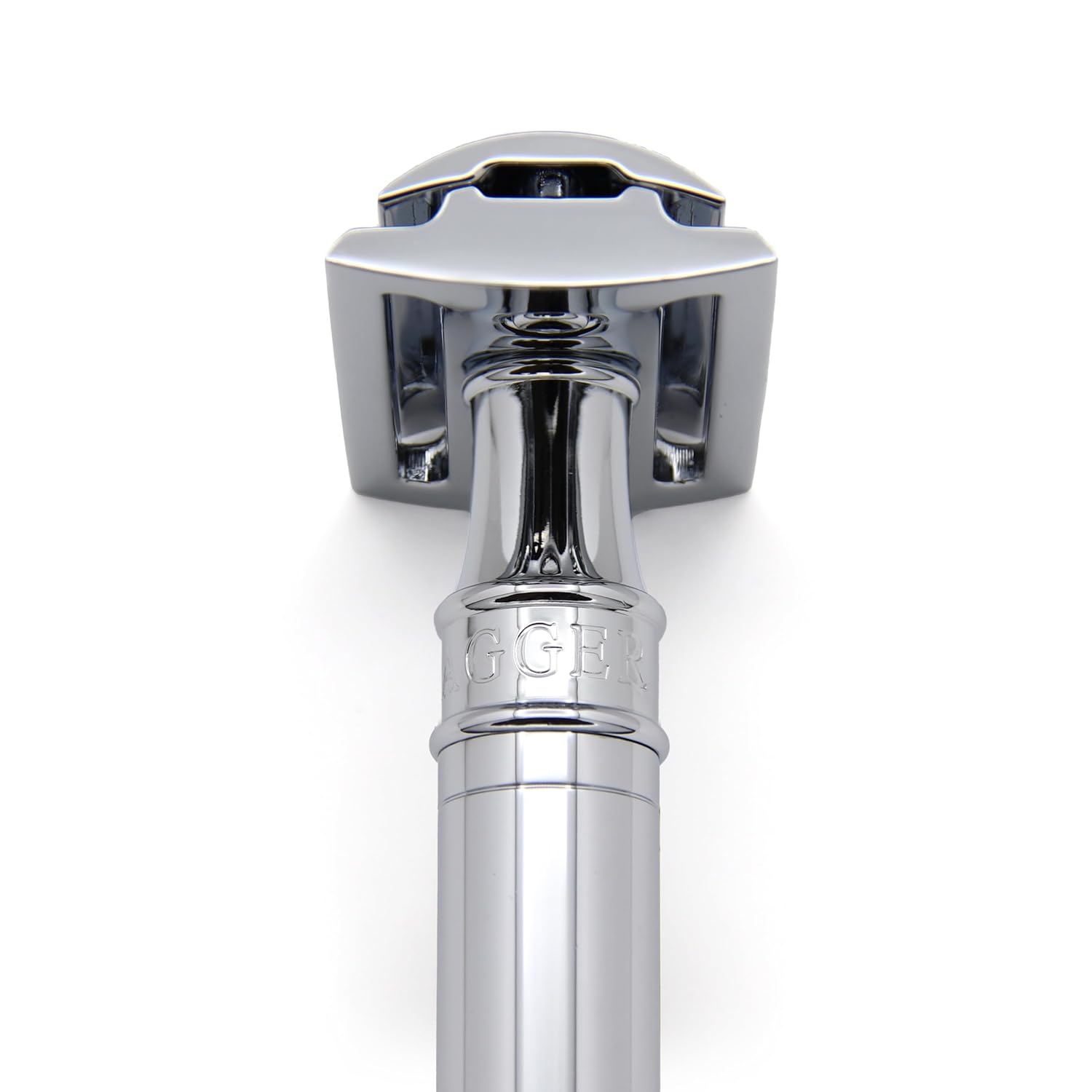 About this item CLEAN SHAVE: The Edwin Jagger DE8 razor head, featured on the DE89 razor, is expertly engineered to deliver a professional shaving experience. A single blade (not included) means fewer cuts, less irritation, and a smoother result. ECO-FRIENDLY: Simply recycle and replace the stainless-steel blade (not included) for years of cost effective, close, and comfortable shaving. Be kind to your skin and kind to the environment while saving money. PREMIUM QUALITY: The handle benefits from timeless and classic design that features a smooth and polished chrome surface. This classic men’s razor offers a comfortable, barbershop quality shave - every time. CLASSIC DESIGN: The Edwin Jagger DE89 is a traditional double edge safety razor. Made using high-quality material for a sleek and sophisticated appearance, your reusable, eco-friendly Edwin Jagger razor will last a lifetime. EDWIN JAGGER: Made by the renowned manufacturer in Sheffield, England, to the highest standard. This luxury razor is delivered in smart presentation packaging, includes care booklet and instructions, and makes an ideal gift for both men and women. See more product details,CLEAN SHAVE: The Edwin Jagger DE8 razor head, featured on the DE89 razor, is expertly engineered to deliver a professional shaving experience. A single blade (not included) means fewer cuts, less irritation, and a smoother result,ECO-FRIENDLY: Simply recycle and replace the stainless-steel blade (not included) for years of cost effective, close, and comfortable shaving. Be kind to your skin and kind to the environment while saving money,PREMIUM QUALITY: The handle benefits from timeless and classic design that features a smooth and polished chrome surface. This classic men’s razor offers a comfortable, barbershop quality shave - every time,CLASSIC DESIGN: The Edwin Jagger DE89 is a traditional double edge safety razor. Made using high-quality material for a sleek and sophisticated appearance, your reusable, eco-friendly Edwin Jagger razor will last a lifetime,EDWIN JAGGER: Made by the renowned manufacturer in Sheffield, England, to the highest standard. This luxury razor is delivered in smart presentation packaging, includes care booklet and instructions, and makes an ideal gift for both men and women
