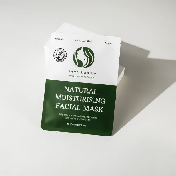 Revolutionize your skincare routine with eeve beauty’s natural moisturizing facial sheet mask. Immerse your skin in the ultimate luxury of organic and natural ingredients, delivering intense hydration for a radiant glow. At eeve beauty, we take pride in our commitment to ethical beauty – our products are halal-certified and cruelty-free. Elevate your skincare routine and experience the harmonious fusion of nature’s goodness and radiant results. join us on the journey to a more beautiful, conscious you. Halal-certified skincare mask Key Benefits: • Intense Hydration: Replenish and retain moisture for a dewy, radiant complexion. • Ethical Beauty: Our masks are halal-certified, vegan, and cruelty-free, aligning with your values. • Nourishing Formula: Feed your skin with the goodness of nature, promoting a healthier, revitalized appearance. • Anti-aging Defense: combat signs of aging and dryness, revealing a smoother, more youthful skin texture. • Luxurious Rejuvenation: immerse yourself in a spa-like experience, indulging in the pampering your skin deserves. elevate your skincare routine with eeve beauty – where the fusion of nature and beauty unfolds
