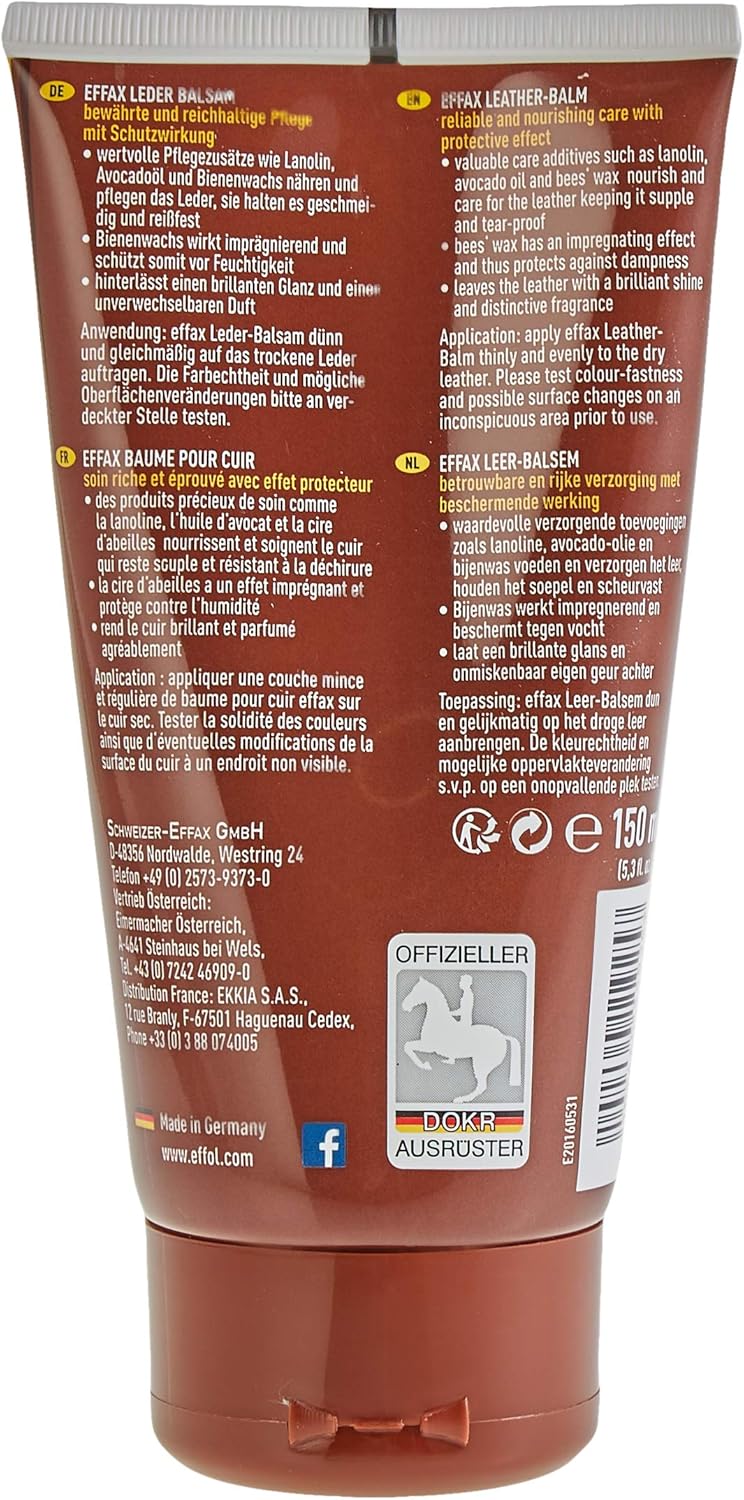 Product Description 0 Directions See Description P.when('A').execute(function(A) { A.on('a:expander:toggle_description:toggle:collapse', function(data) { window.scroll(0, data.expander.$expander[0].offsetTop-100); }); }); Safety Warning Please read all product packaging literature and product labels before use. Box Contains 1 x Effax Leather Balm 150ml tube See more,Ingredients include Beeswax, Lanolin and Avocado Oil,Leaves leather with a brilliant shine,Available in 150ml and 500ml,If you want to try the product first there is also a 50ml mini tube available,Item display weight: 0.16 kilograms. Age range description: All Life Stages. Item display volume: 150.0 milliliters