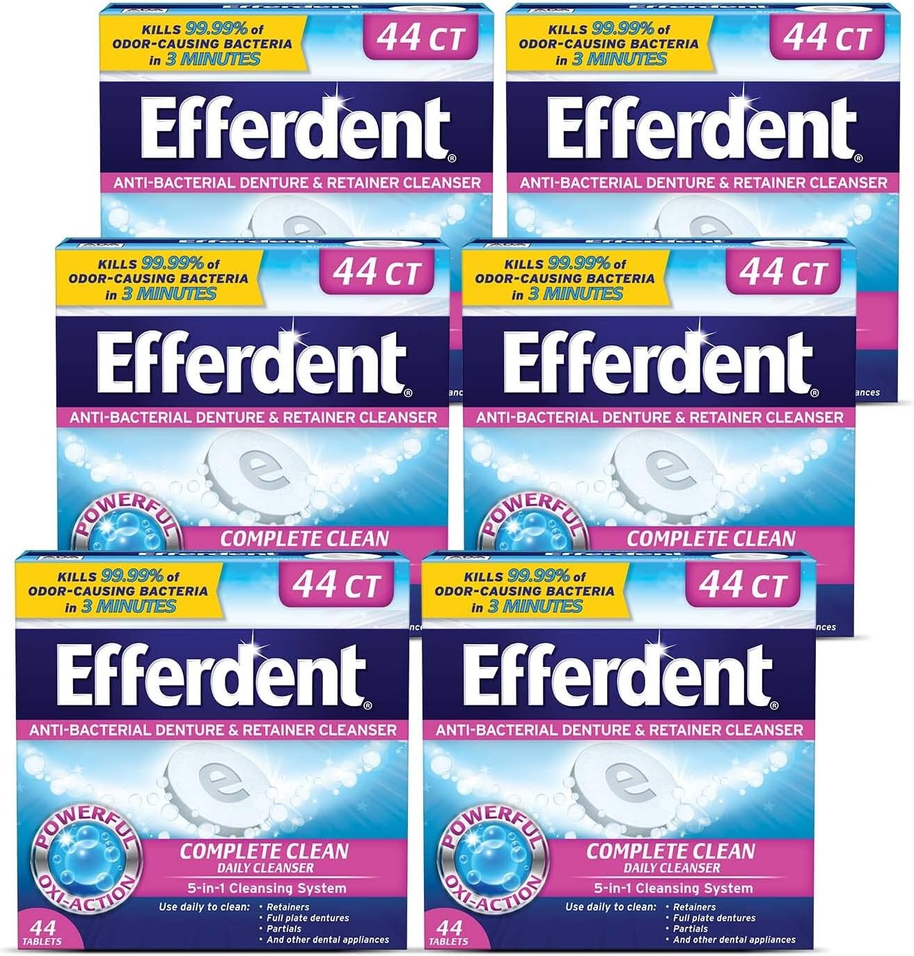 Efferdent Denture Cleanser Tablets, Complete Clean, Cleanser for Retainer and Dental Appliances, 44 Count, 6 Pack