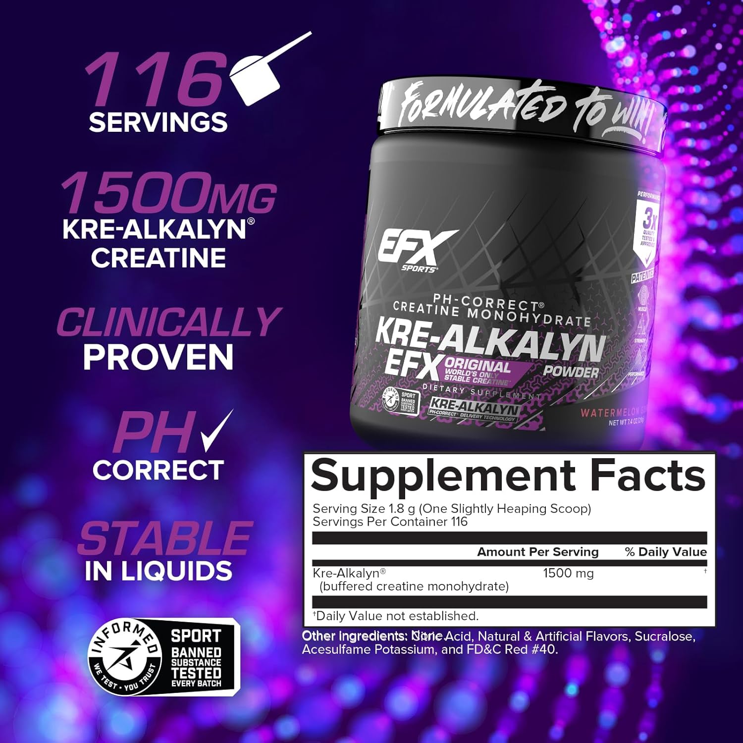 Efx Sports Kre-Alkalyn Efx Powder | Ph Correct Creatine Monohydrate Powder Supplement | Strength, Muscle Growth & Performance | 116 Servings (Watermelon Gummy)