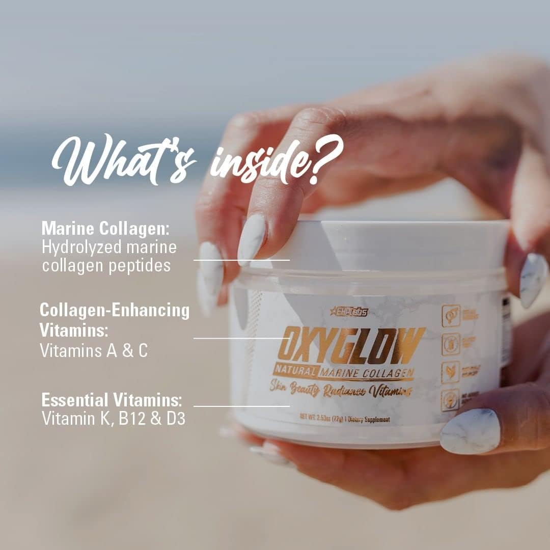 Ehp Labs Oxyglow Natural Marine Collagen Powder - Hydrolyzed Marine Collagen Peptides Powder - Boosts Skin Elasticity & Firmness, Accelerates Nail Growth & Strengthens Hair, 30 Serves (Unflavored)