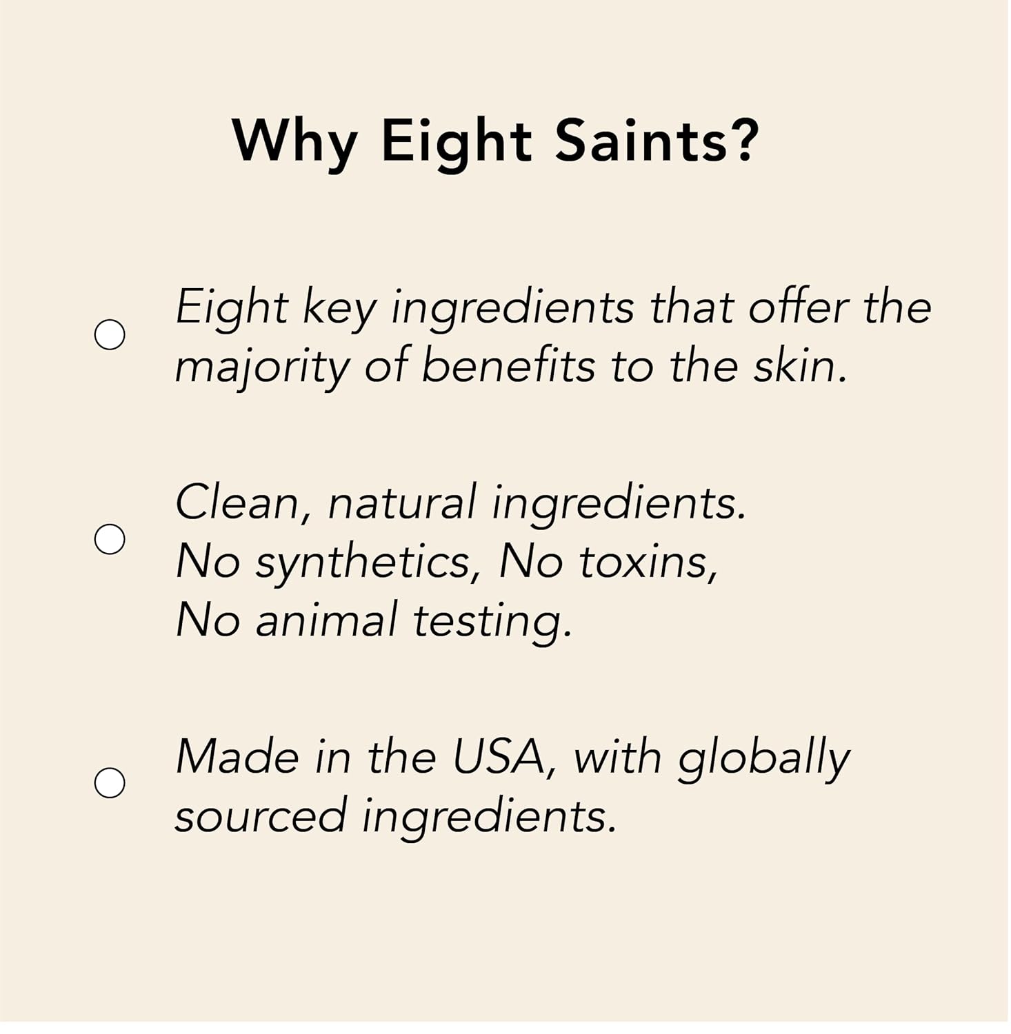 We'Re All About Providing Truth And Clarity In Natural, Effective Skincare. In A Crowded Market With Over-Hyped āMiracle Ingredientsā, We Found Most Ingredients Don'T Produce Results. We Drilled Down To 8 Key Ingredients That Generated The Majority Of The Benefits For Your Skin: Our "Eight Saints"