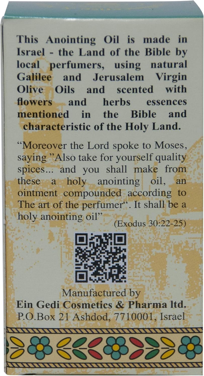This Anointing Oil contains virgin olive oil from the Galilee and Jerusalem and scented with flowers and Herbs essences