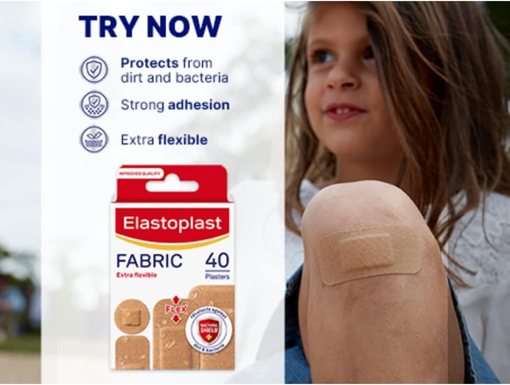 Elastoplast Extra Flexible Fabric Plaster Strips (10 X 40 Pieces), Extra Flexible, Breathable, Large Plasters