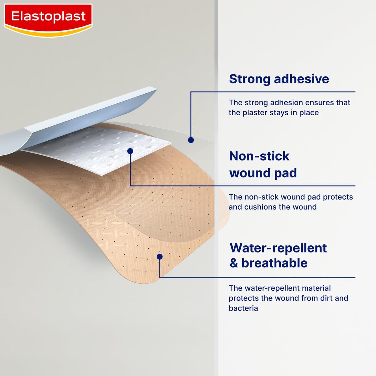 Elastoplast Water Resistant Plastic Plasters (20 Pieces), Dirt And Water-Resistant, Waterproof, Ideal For First Aid, Strong Adhesion With Non-Stick Wound Pad, Breathable Material, Tan
