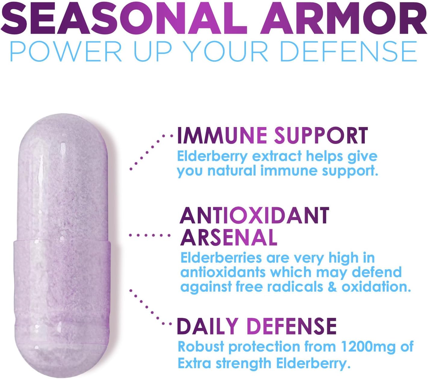 Elderberry Immune Support 10:1 Extract Capsules - Daily Immune Support Supplement For Adults, Natural Sambucus Black Elderberry Vitamins, Vegan Vitamin, Gluten & Sugar Free, Non-Gmo - 60 Count