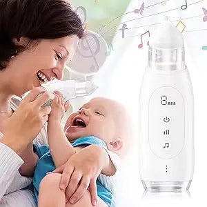 Electric Baby Nasal Aspirator – USB Rechargeable Nose Cleaner with 3 Suction Levels, Soft Silicone Tips, Soothing Music & Light