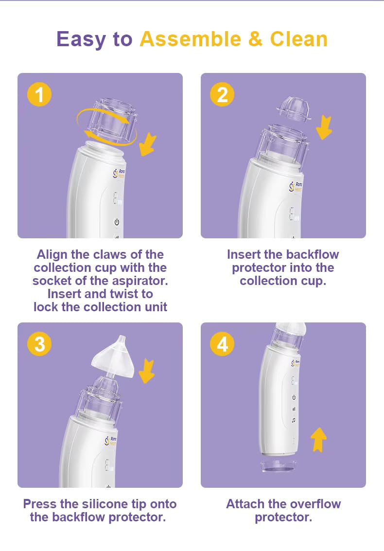 The aspirator comes with soft, medical-grade silicone tips that are gentle on your baby’s delicate nose, ensuring safe and irritation-free cleaning. To make the process easier for parents and soothing for babies, it features built-in calming music and soft lights, turning a stressful task into a comforting experience.